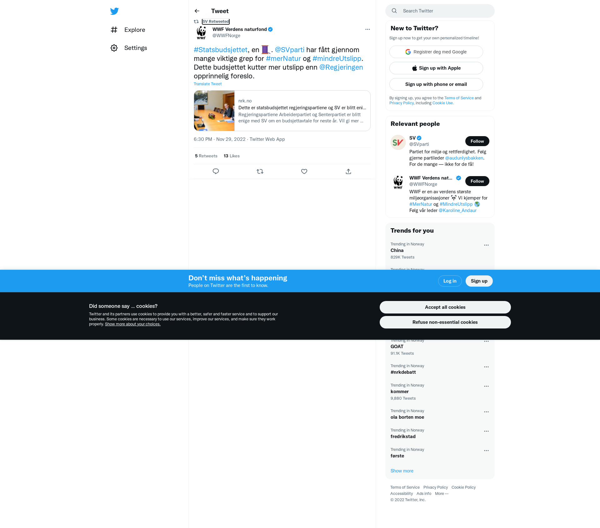RT @WWFNorge: #Statsbudsjettet, en 🧵. @SVparti har fått gjennom mange viktige grep for #merNatur og #mindreUtslipp. Dette budsjettet kutter mer utslipp enn @Regjeringen opprinnelig foreslo. https://t.co/LksM9uRYzw
