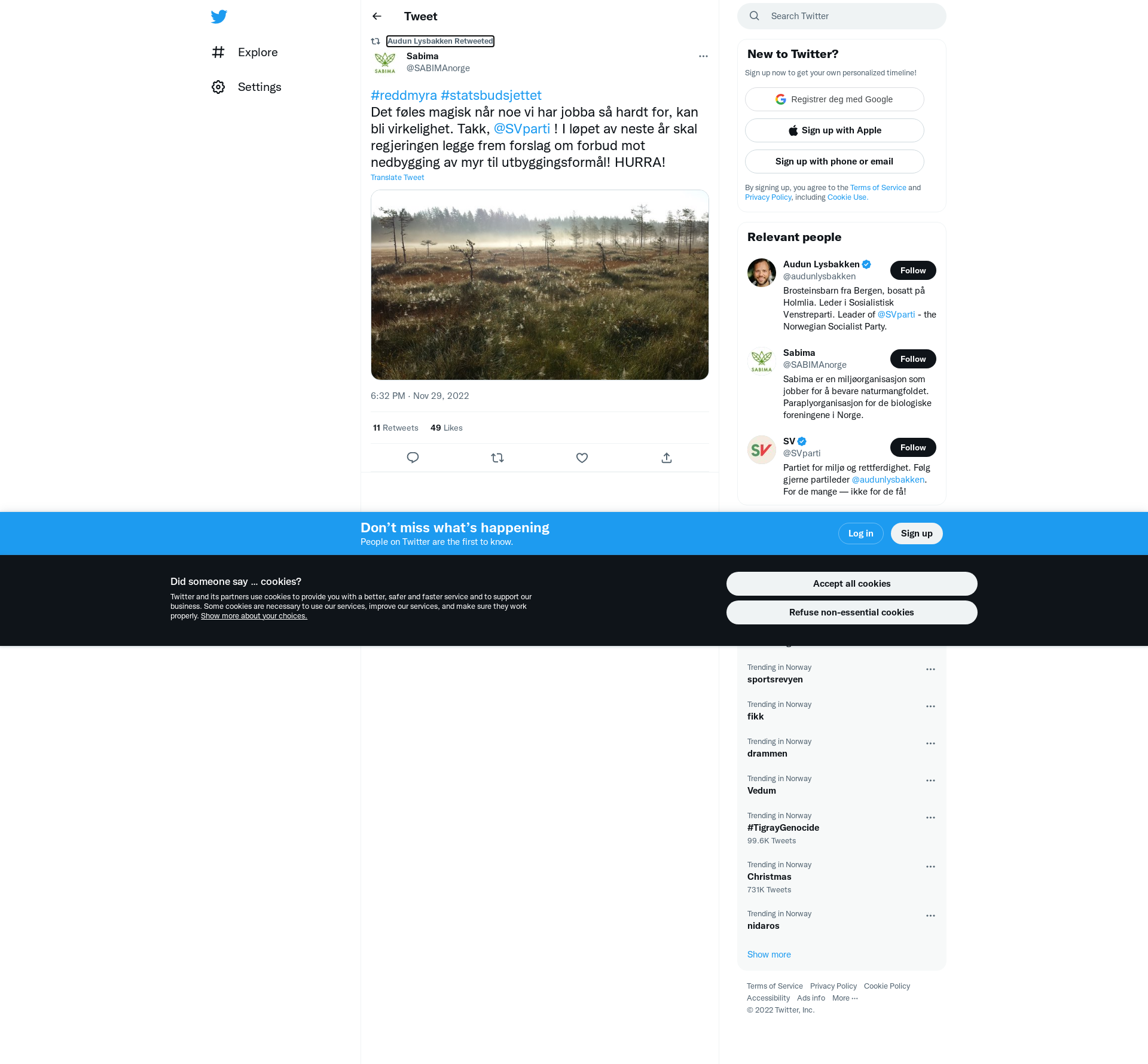 RT @SABIMAnorge: #reddmyra #statsbudsjettet\nDet føles magisk når noe vi har jobba så hardt for, kan bli virkelighet. Takk, @SVparti ! I løp…