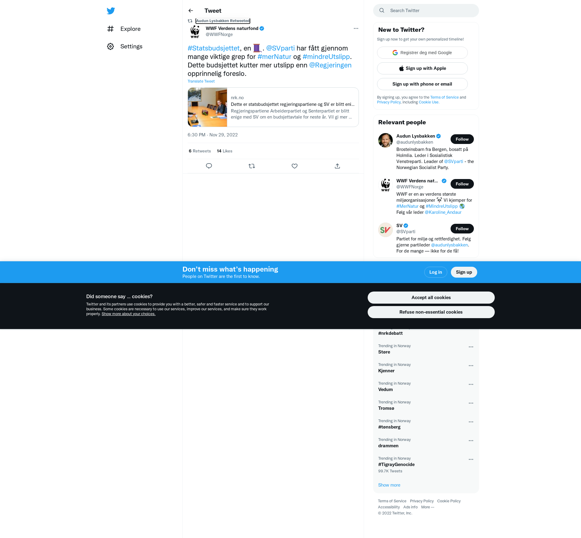 RT @WWFNorge: #Statsbudsjettet, en 🧵. @SVparti har fått gjennom mange viktige grep for #merNatur og #mindreUtslipp. Dette budsjettet kutter mer utslipp enn @Regjeringen opprinnelig foreslo. https://t.co/LksM9uRYzw