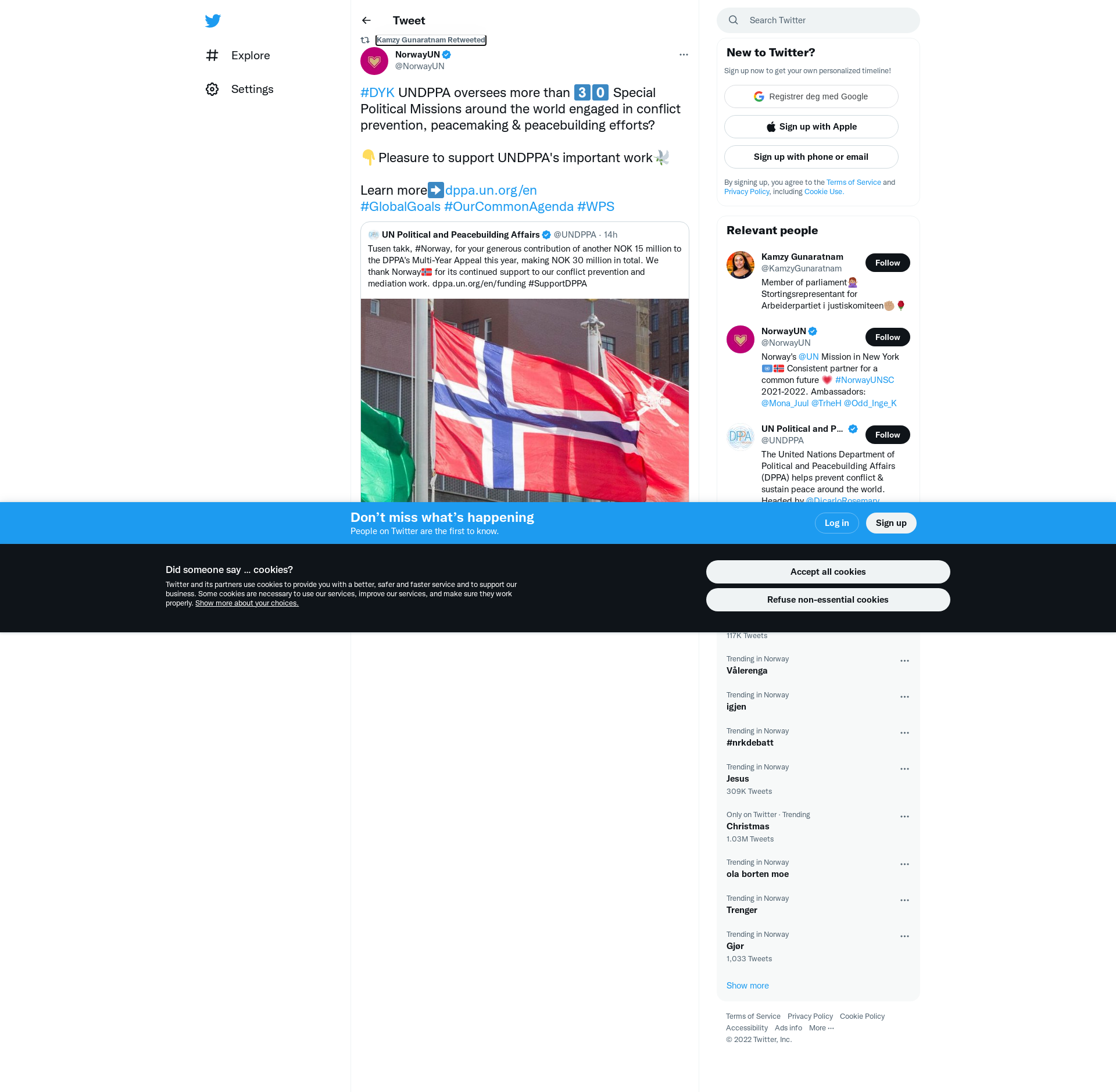 RT @NorwayUN: #DYK UNDPPA oversees more than 3⃣0⃣ Special Political Missions around the world engaged in conflict prevention, peacemaking & peacebuilding efforts?\n\n👇Pleasure to support UNDPPA's important work🕊️\n\nLearn more➡️https://t.co/uhJm8TzE0O\n#GlobalGoals #OurCommonAgenda #WPS