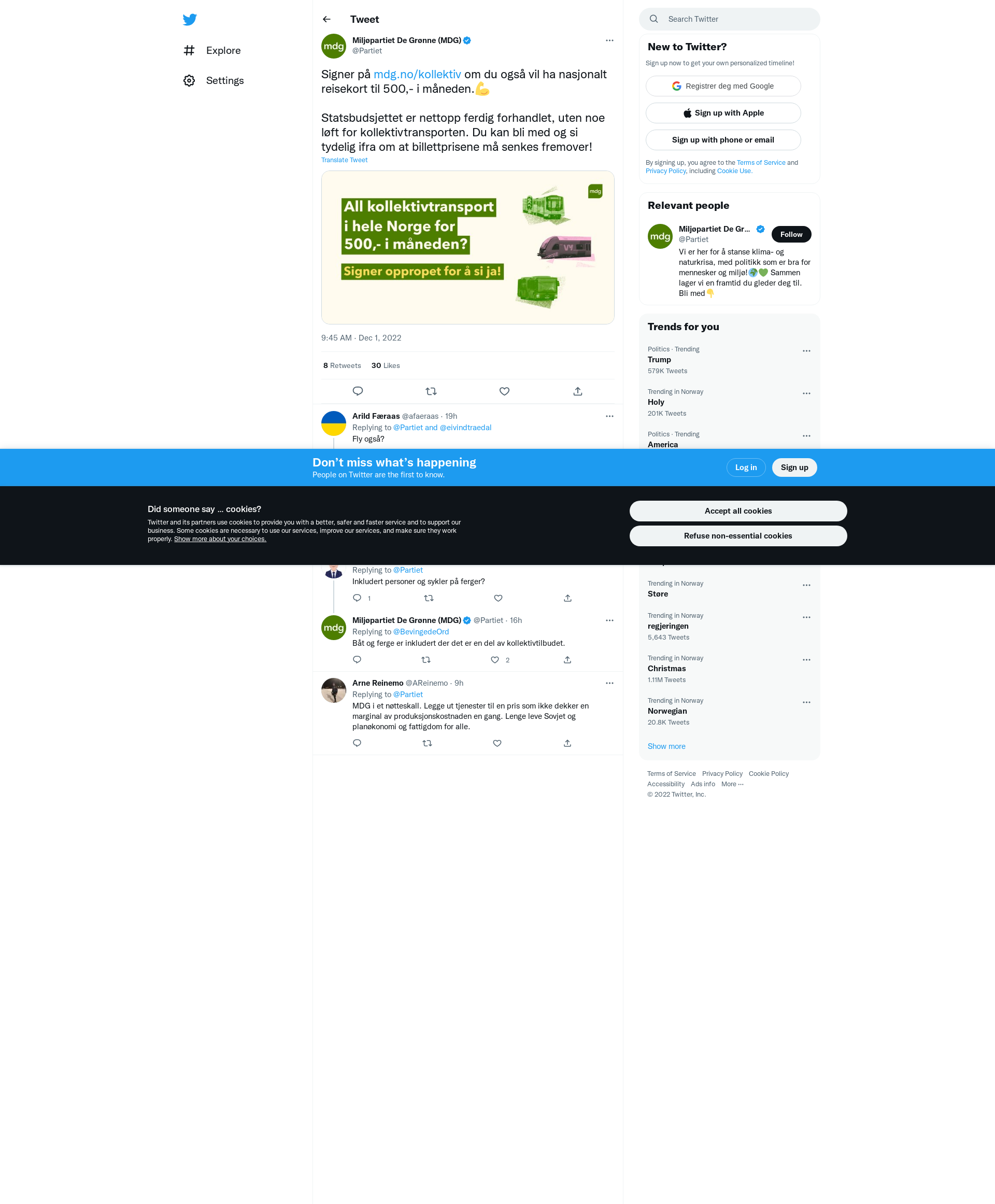 Signer på https://t.co/FUlHEZo82V om du også vil ha nasjonalt reisekort til 500,- i måneden.💪\n\nStatsbudsjettet er nettopp ferdig forhandlet, uten noe løft for kollektivtransporten. Du kan bli med og si tydelig ifra om at billettprisene må senkes fremover! https://t.co/h9R0AmQDBW