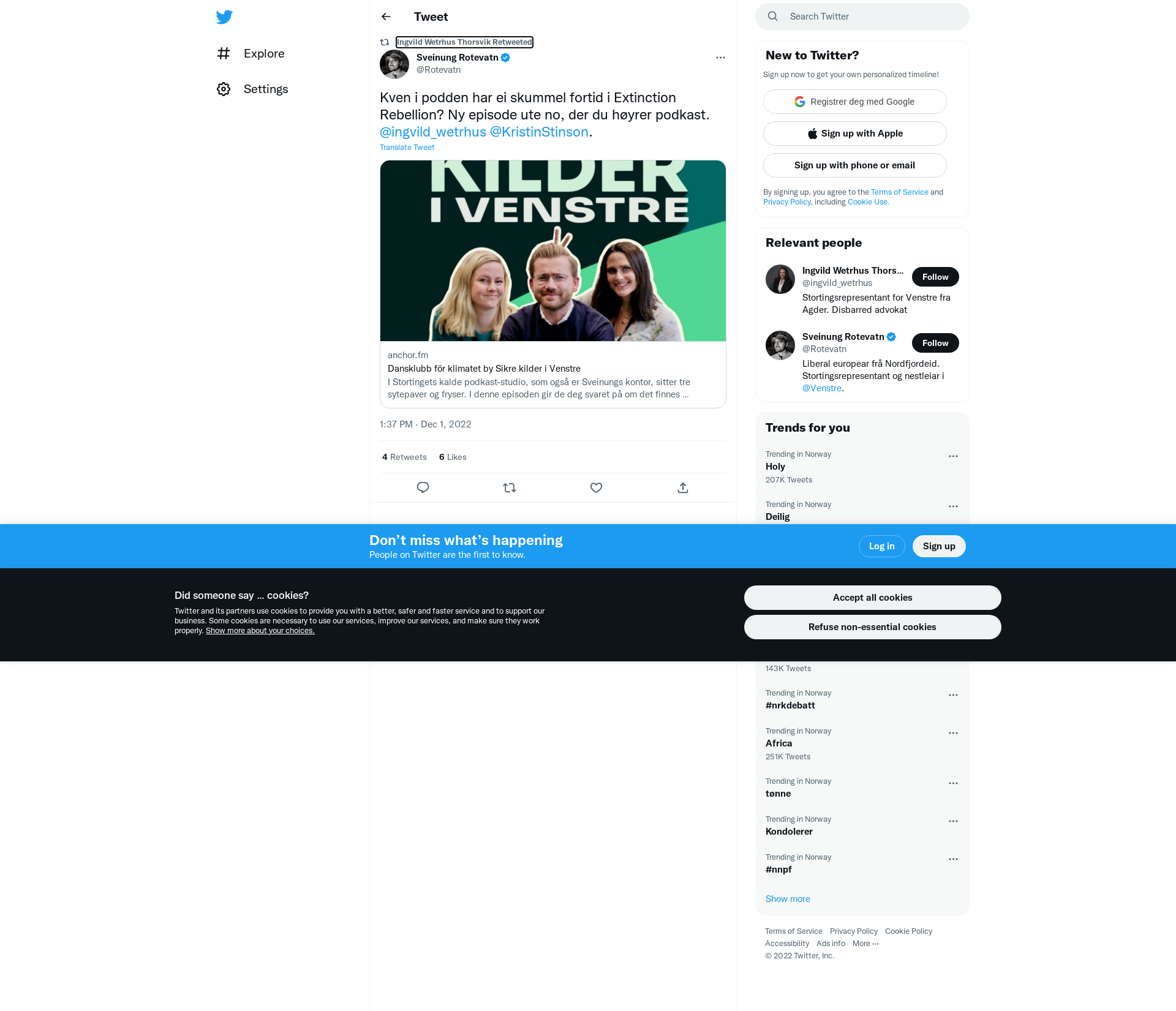 RT @Rotevatn: Kven i podden har ei skummel fortid i Extinction Rebellion? Ny episode ute no, der du høyrer podkast. @ingvild_wetrhus @KristinStinson. https://t.co/shKy6UrvIi
