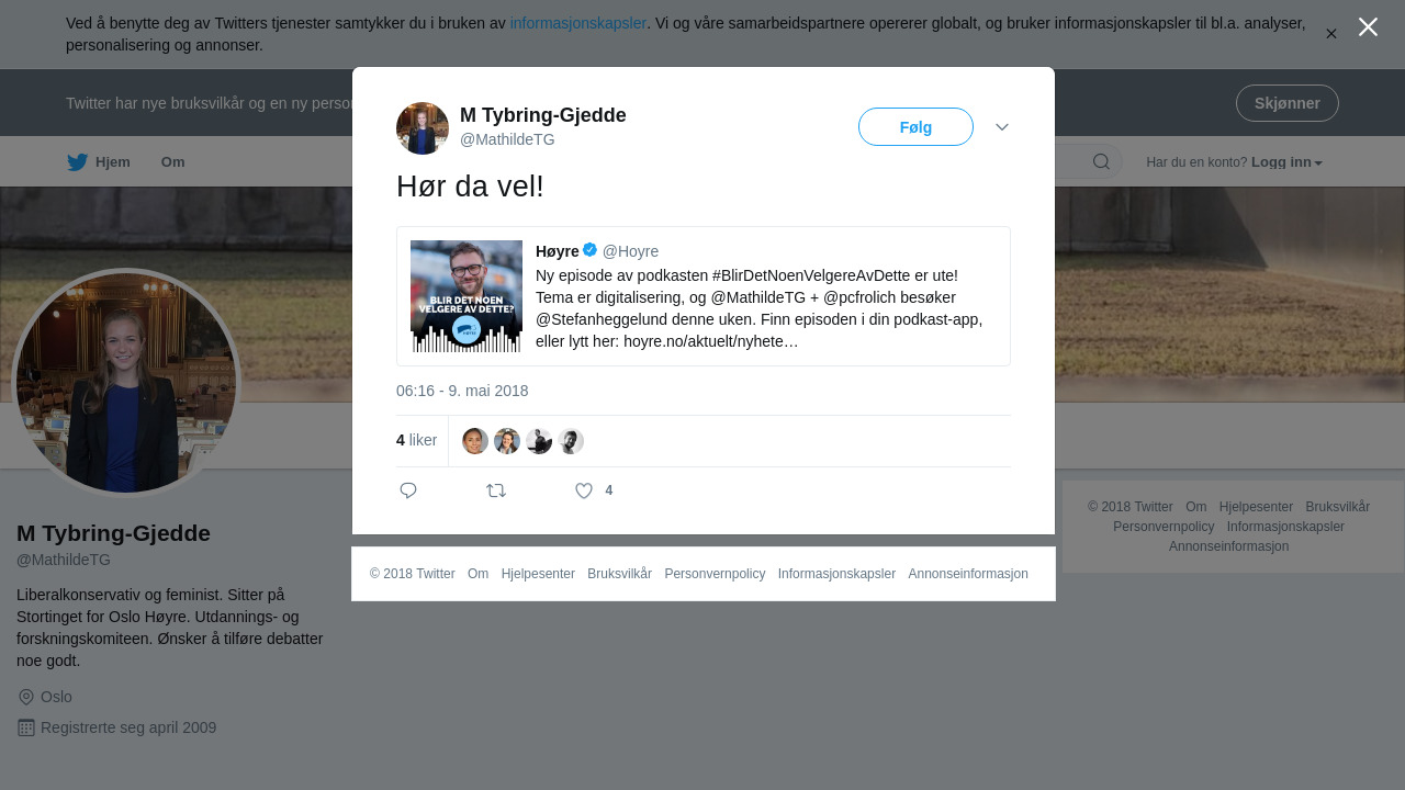 “Ny episode av podkasten #BlirDetNoenVelgereAvDette er ute! Tema er digitalisering, og @MathildeTG + @pcfrolich besøker @Stefanheggelund denne uken. Finn episoden i din podkast-app, eller lytt her: https://t.co/WCswxG41Ru”