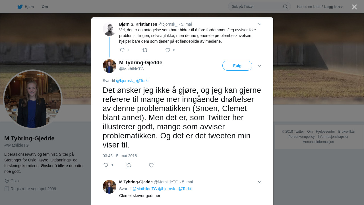 @bjornsk_ @Torkil Det ønsker jeg ikke å gjøre, og jeg kan gjerne referere til mange mer inngående drøftelser av denne problematikken (Snoen, Clemet blant annet). Men det er, som Twitter her illustrerer godt, mange som avviser problematikken. Og det er det tweeten min viser til.