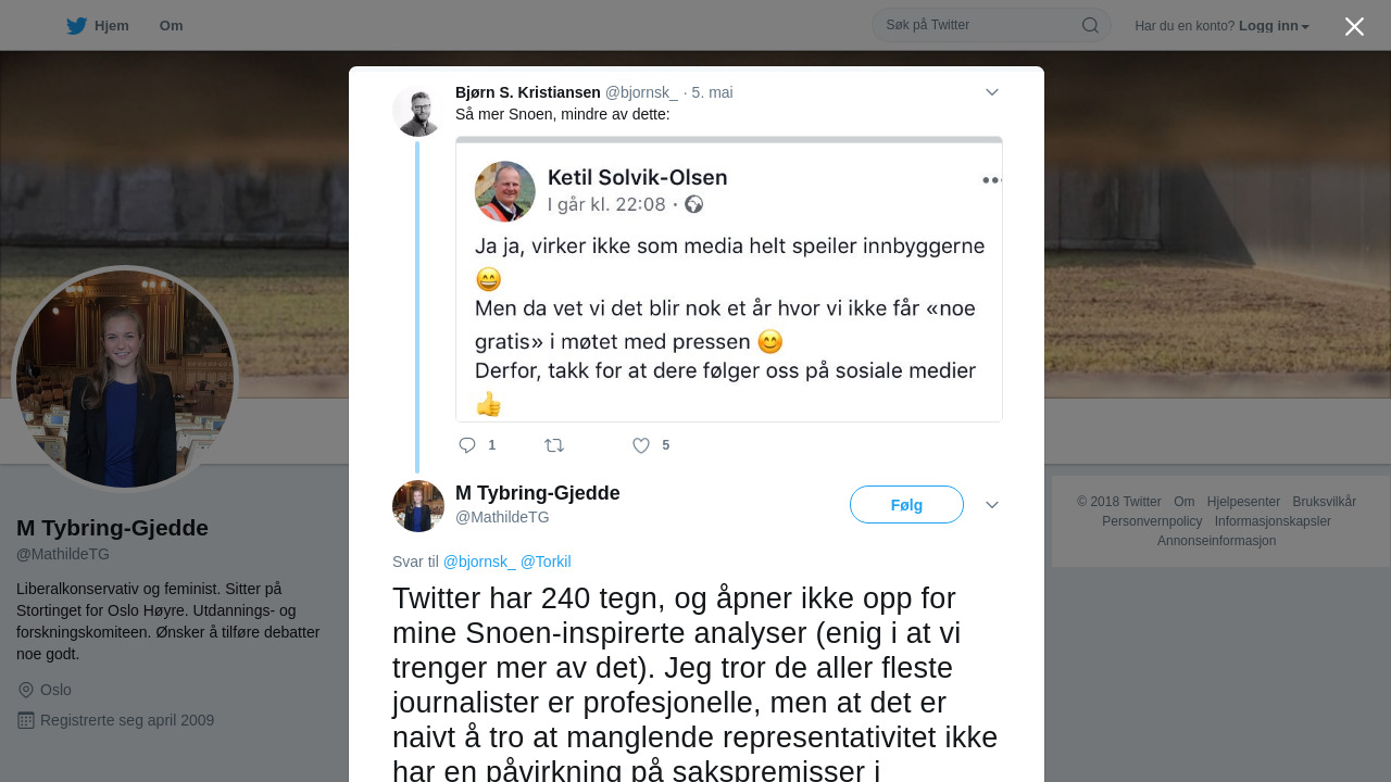 @bjornsk_ @Torkil Twitter har 240 tegn, og åpner ikke opp for mine Snoen-inspirerte analyser (enig i at vi trenger mer av det). Jeg tror de aller fleste journalister er profesjonelle, men at det er naivt å tro at manglende representativitet ikke har en påvirkning på sakspremisser i journalistikken