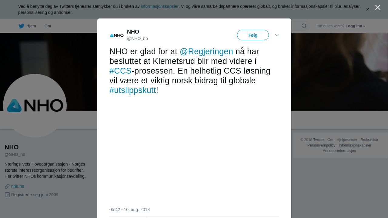 NHO er glad for at @Regjeringen nå har besluttet at Klemetsrud blir med videre i #CCS-prosessen. En helhetlig CCS løsning vil være et viktig norsk bidrag til globale #utslippskutt! https://t.co/GlLmUSOlQB