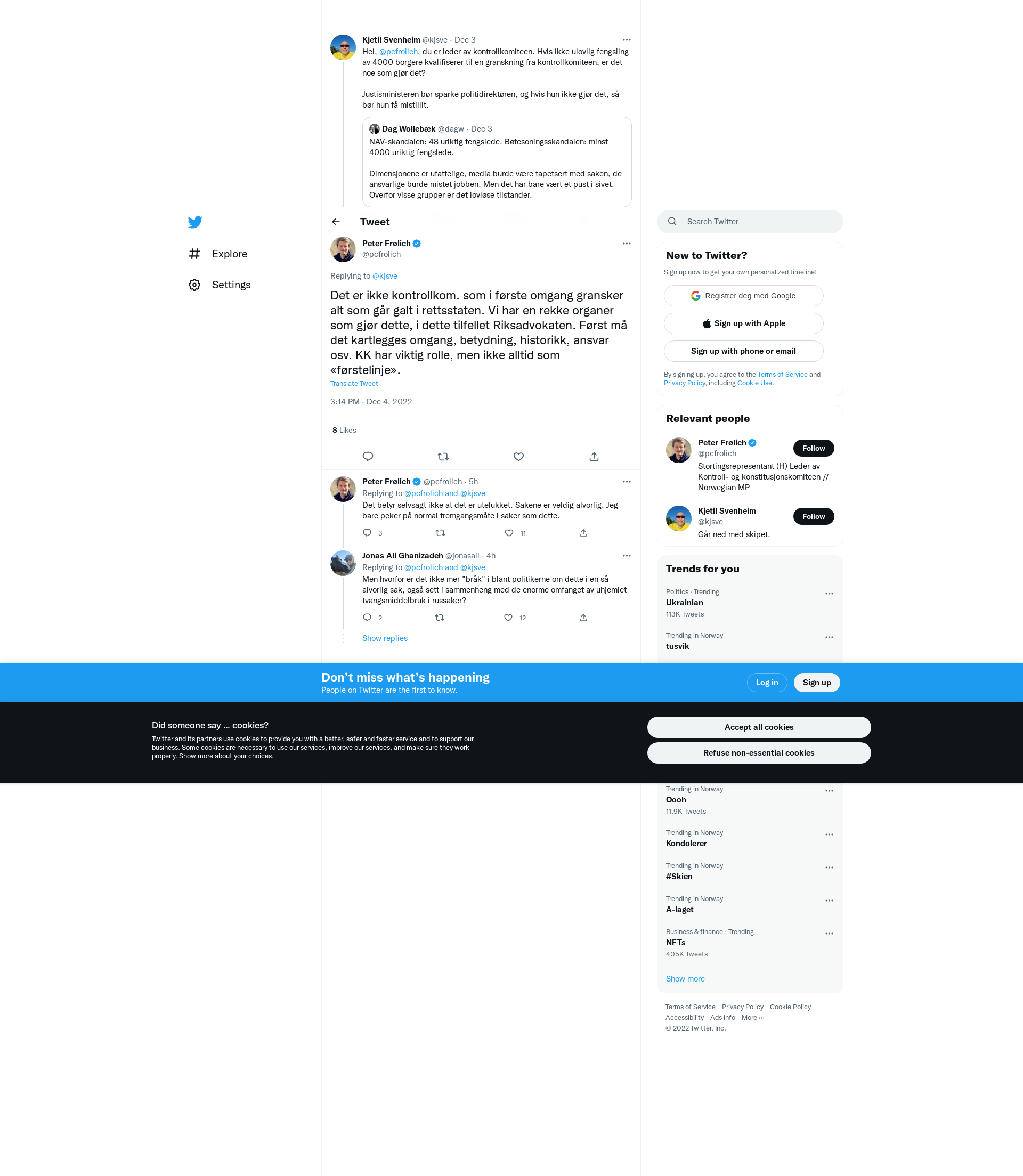 @kjsve Det er ikke kontrollkom. som i første omgang gransker alt som går galt i rettsstaten. Vi har en rekke organer som gjør dette, i dette tilfellet Riksadvokaten. Først må det kartlegges omgang, betydning, historikk, ansvar osv. KK har viktig rolle, men ikke alltid som «førstelinje».