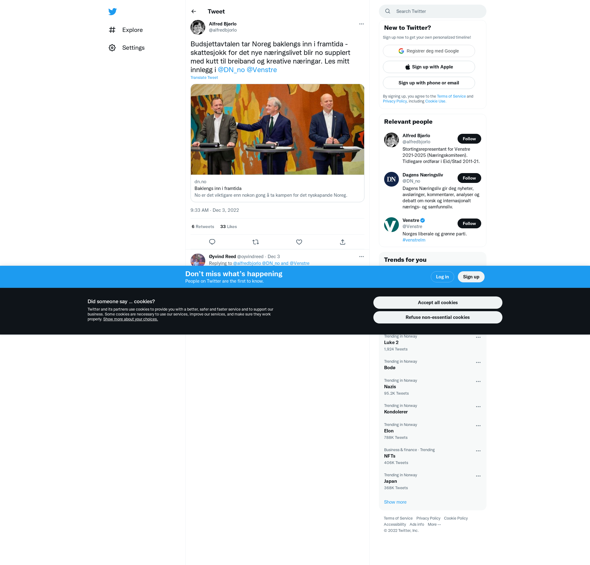 Budsjettavtalen tar Noreg baklengs inn i framtida - skattesjokk for det nye næringslivet blir no supplert med kutt til breiband og kreative næringar. Les mitt innlegg i @DN_no @Venstre https://t.co/7qzTU0QiB8
