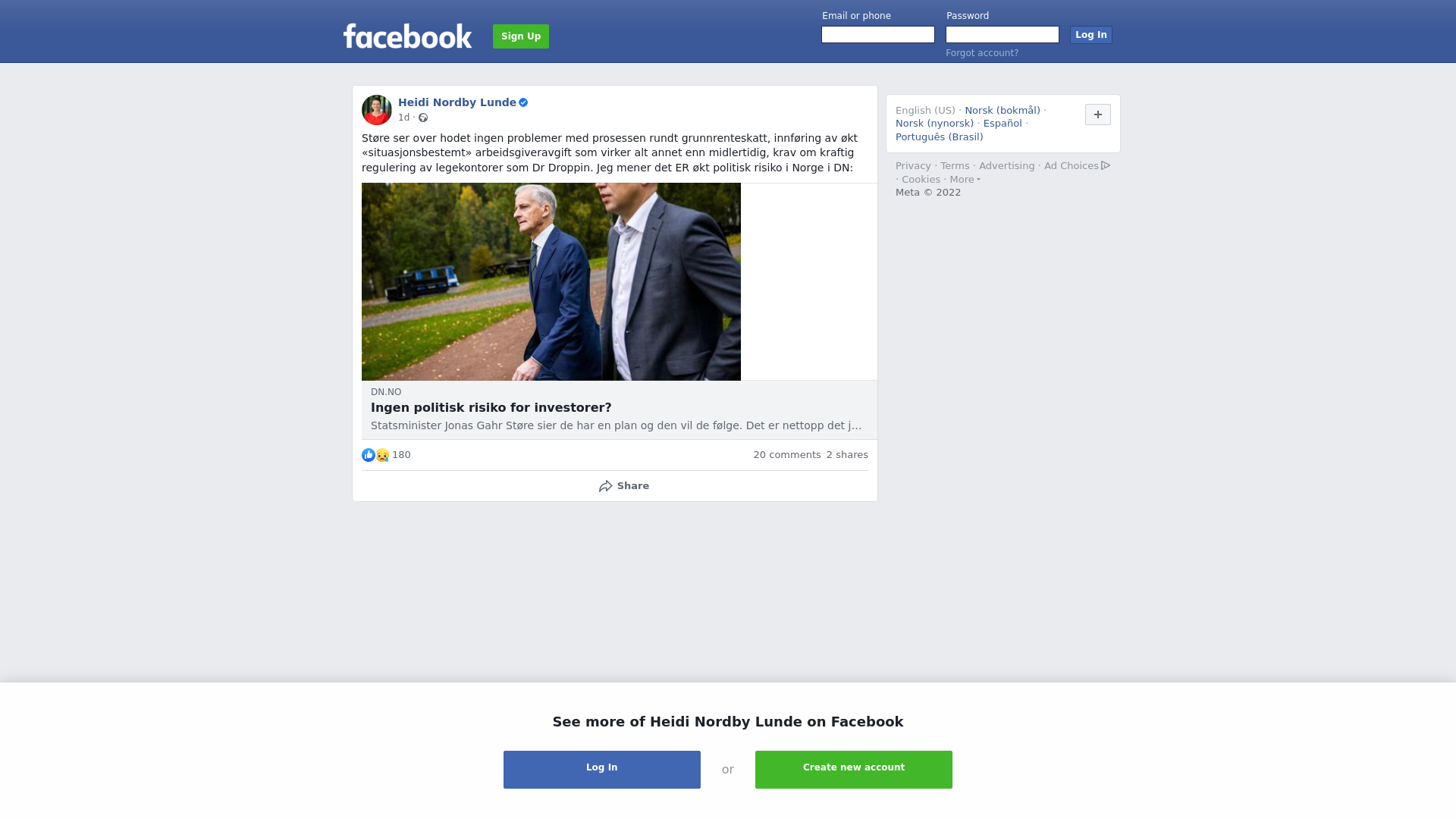 Støre ser over hodet ingen problemer med prosessen rundt grunnrenteskatt, innføring av økt «situasjonsbestemt» arbeidsgiveravgift som virker alt annet enn midlertidig, krav om kraftig regulering av legekontorer som Dr Droppin. Jeg mener det ER økt politisk risiko i Norge i DN: