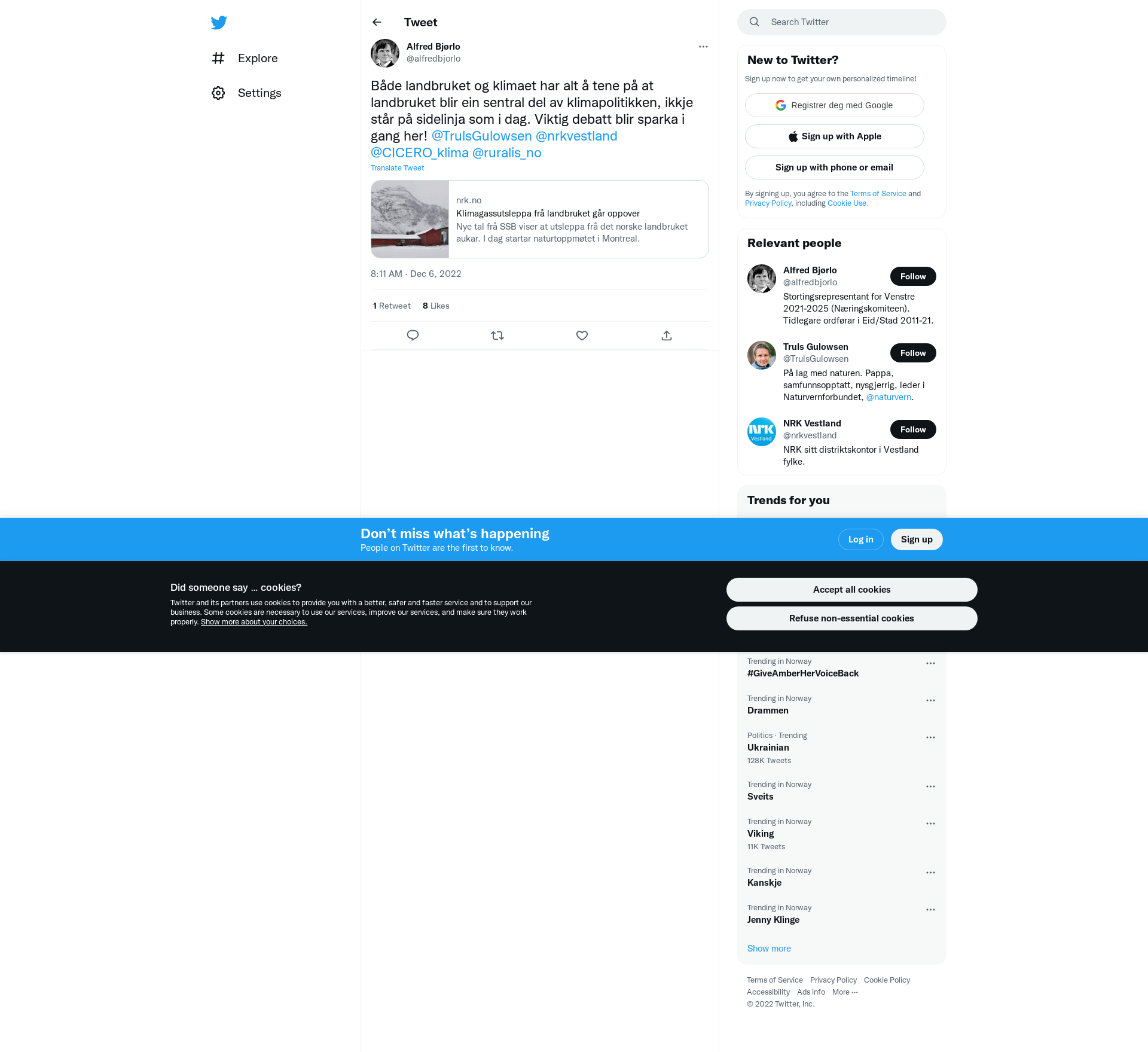 Både landbruket og klimaet har alt å tene på at landbruket blir ein sentral del av klimapolitikken, ikkje står på sidelinja som i dag. Viktig debatt blir sparka i gang her! @TrulsGulowsen @nrkvestland @CICERO_klima @ruralis_no https://t.co/YNQJIWOPPG