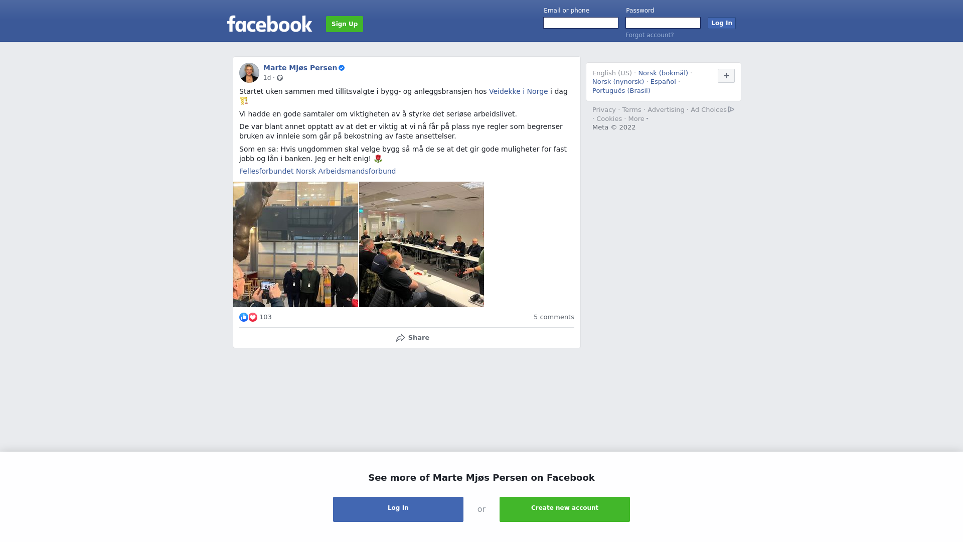 Startet uken sammen med tillitsvalgte i bygg- og anleggsbransjen hos Veidekke i Norge i dag🏗️\n\nVi hadde en gode samtaler om viktigheten av å styrke det seriøse arbeidslivet. \n\nDe var blant annet opptatt av at det er viktig at vi nå får på plass nye regler som begrenser bruken av innleie som går på bekostning av faste ansettelser. \n\nSom en sa: Hvis ungdommen skal velge bygg så må de se at det gir gode muligheter for fast jobb og lån i banken. Jeg er helt enig! 🌹\n\nFellesforbundet Norsk Arbeidsmandsforbund