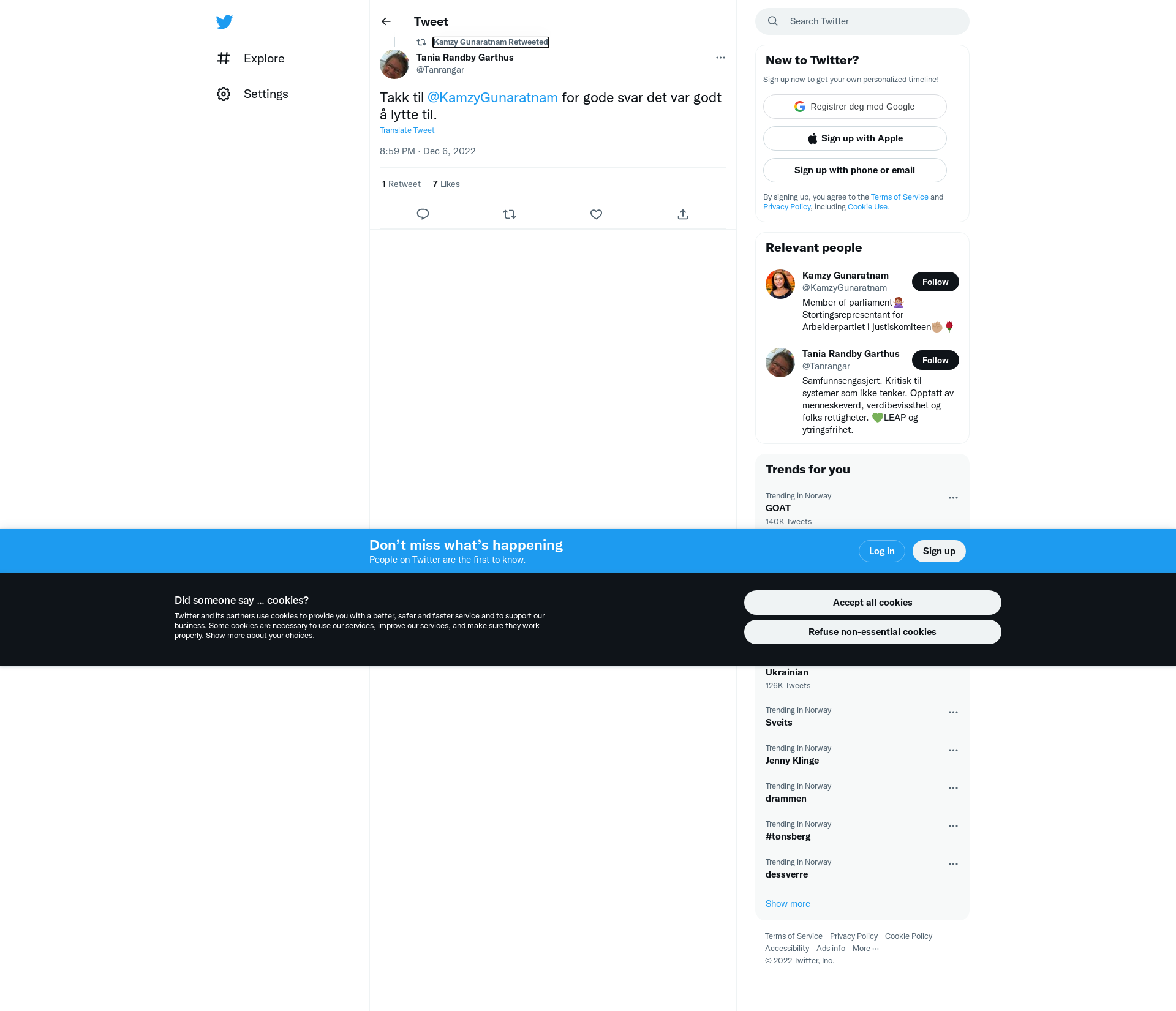 RT @Tanrangar: Takk til @KamzyGunaratnam for gode svar det var godt å lytte til.