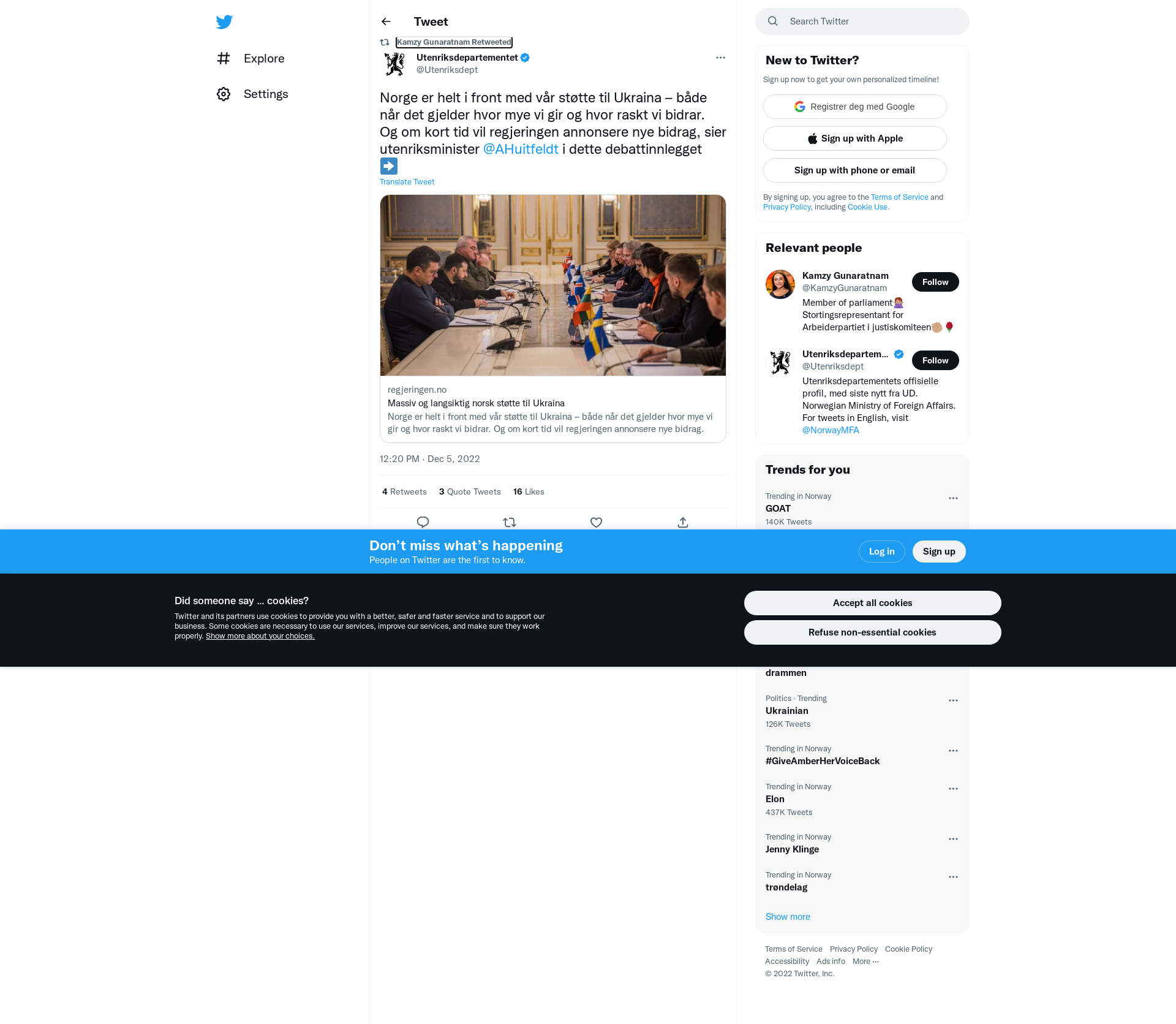 RT @Utenriksdept: Norge er helt i front med vår støtte til Ukraina – både når det gjelder hvor mye vi gir og hvor raskt vi bidrar. \nOg om k…