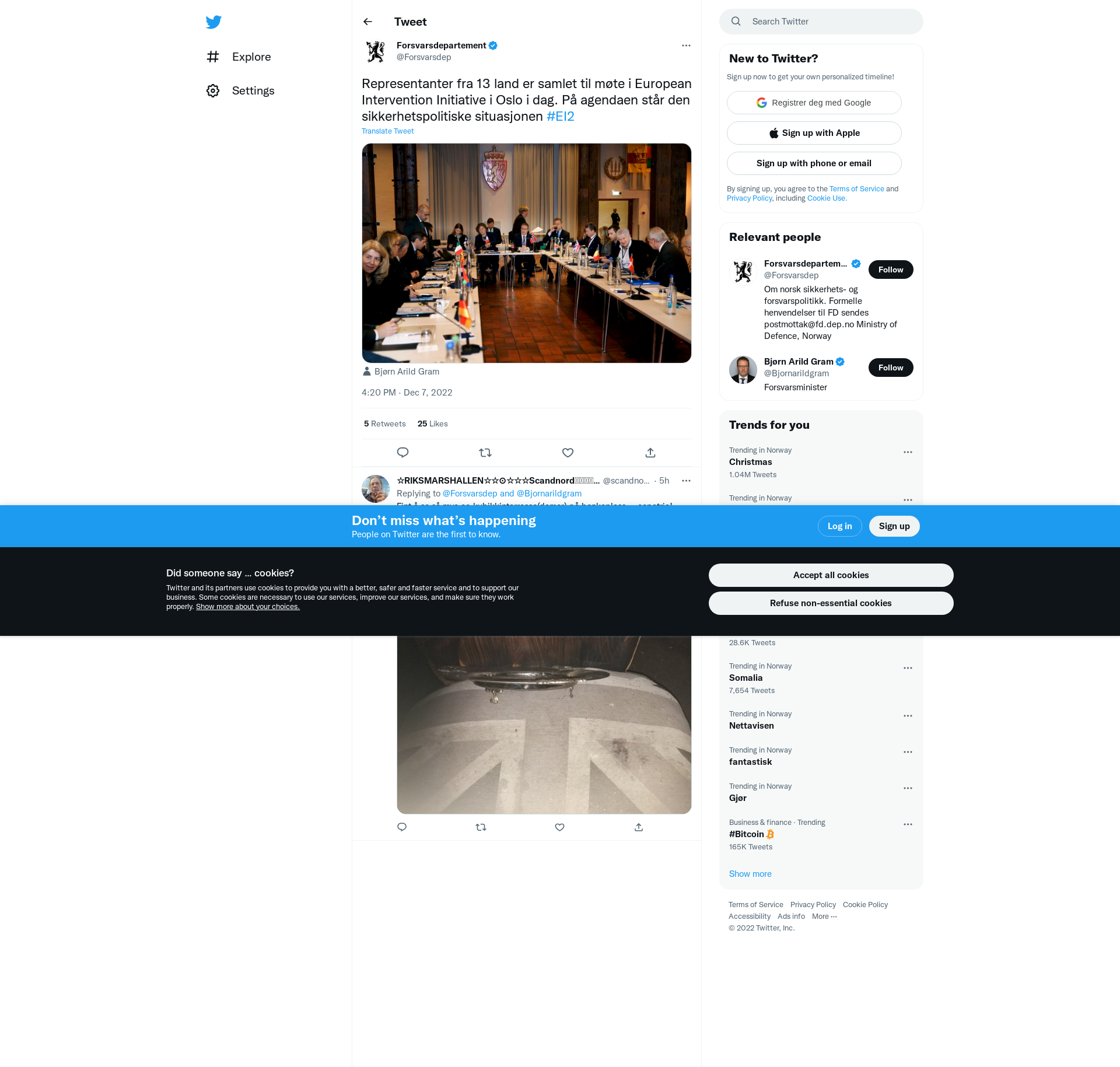Representanter fra 13 land er samlet til møte i European Intervention Initiative i Oslo i dag. På agendaen står den sikkerhetspolitiske situasjonen #EI2 https://t.co/Gn0NEj0bhr