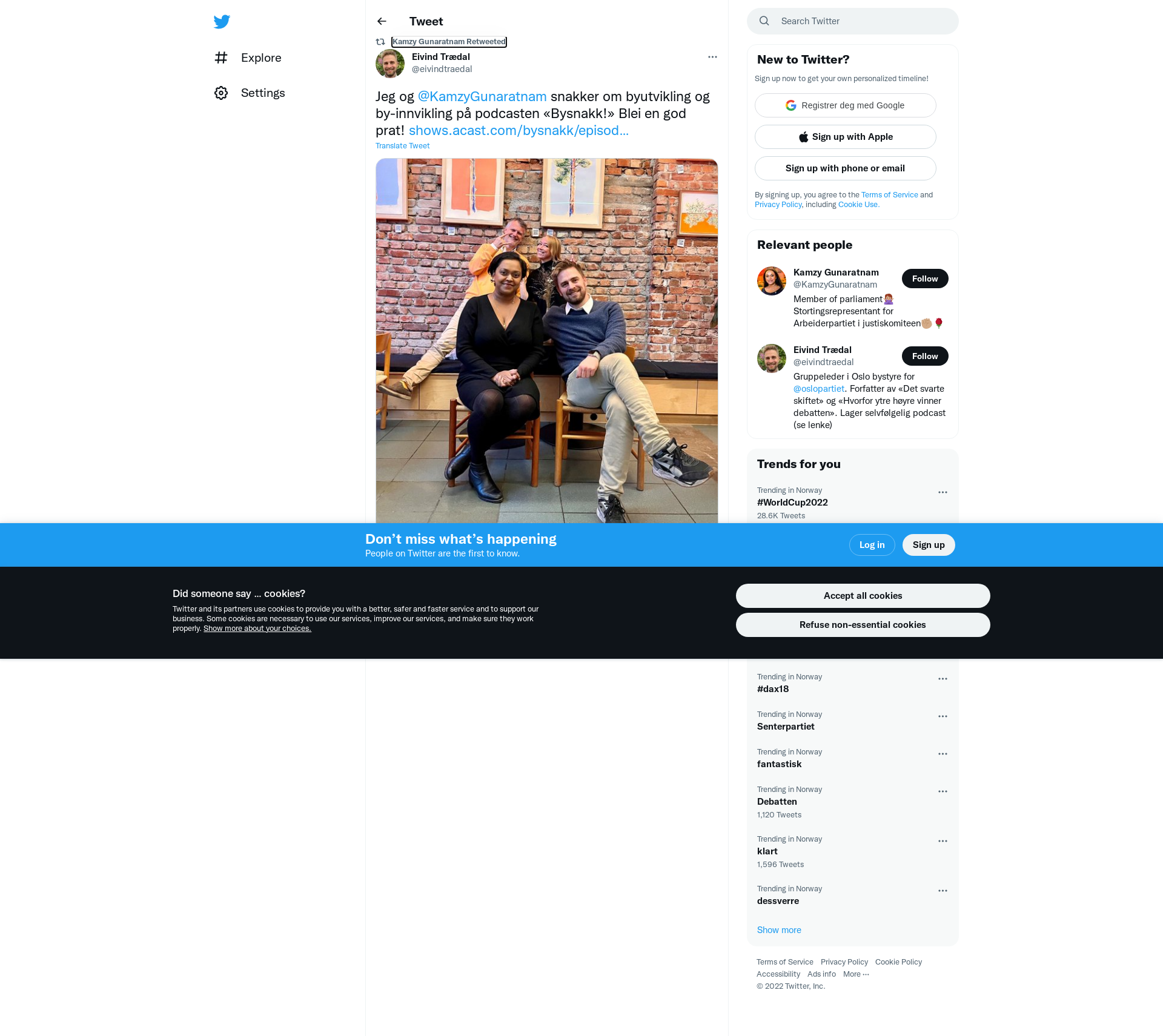 RT @eivindtraedal: Jeg og @KamzyGunaratnam snakker om byutvikling og by-innvikling på podcasten «Bysnakk!» Blei en god prat! https://t.co/tEPBj9kzw3 https://t.co/PhVvf6KQbs
