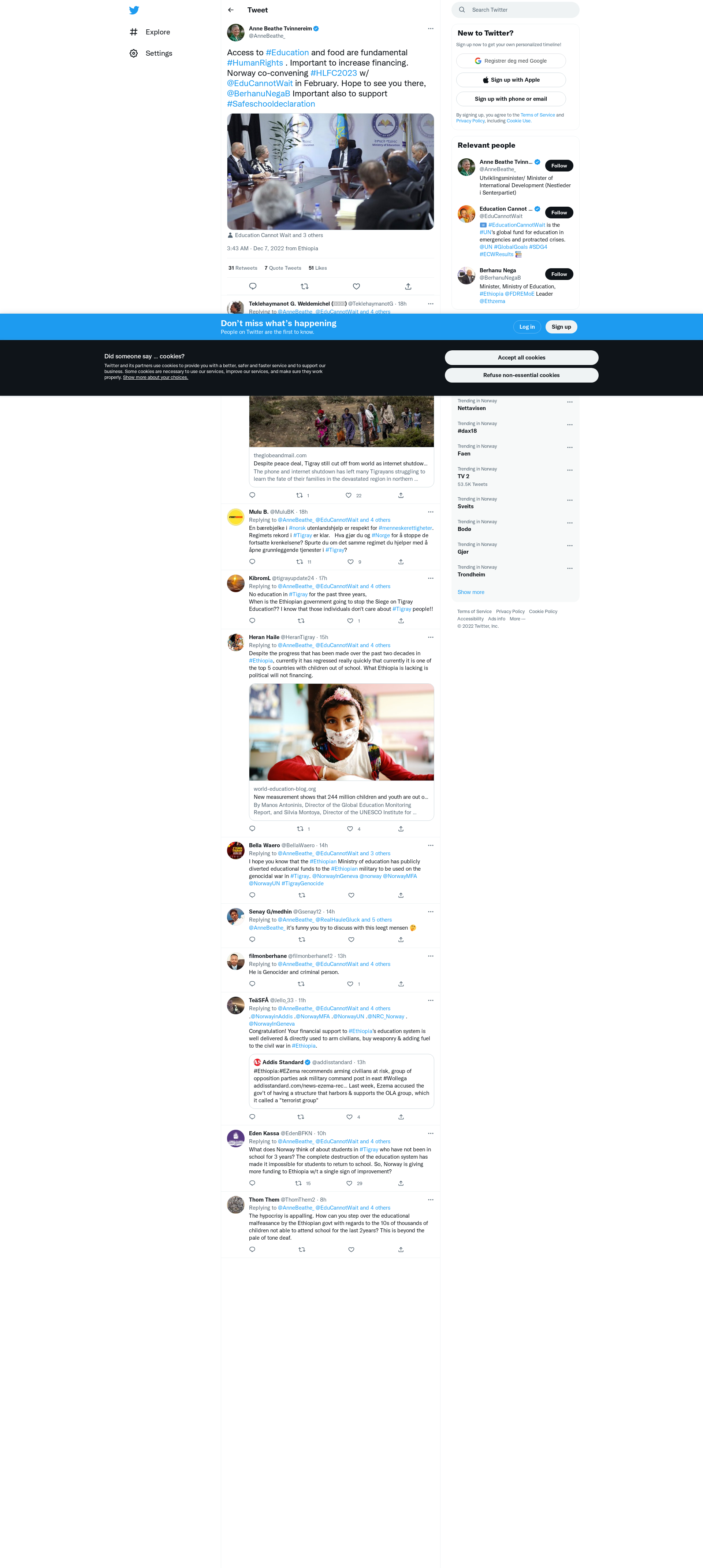 Access to #Education and food are fundamental #HumanRights . Important to increase financing. Norway co-convening #HLFC2023 w/@EduCannotWait in February. Hope to see you there, @BerhanuNegaB Important also to support #Safeschooldeclaration https://t.co/oVr7Y4EFgS