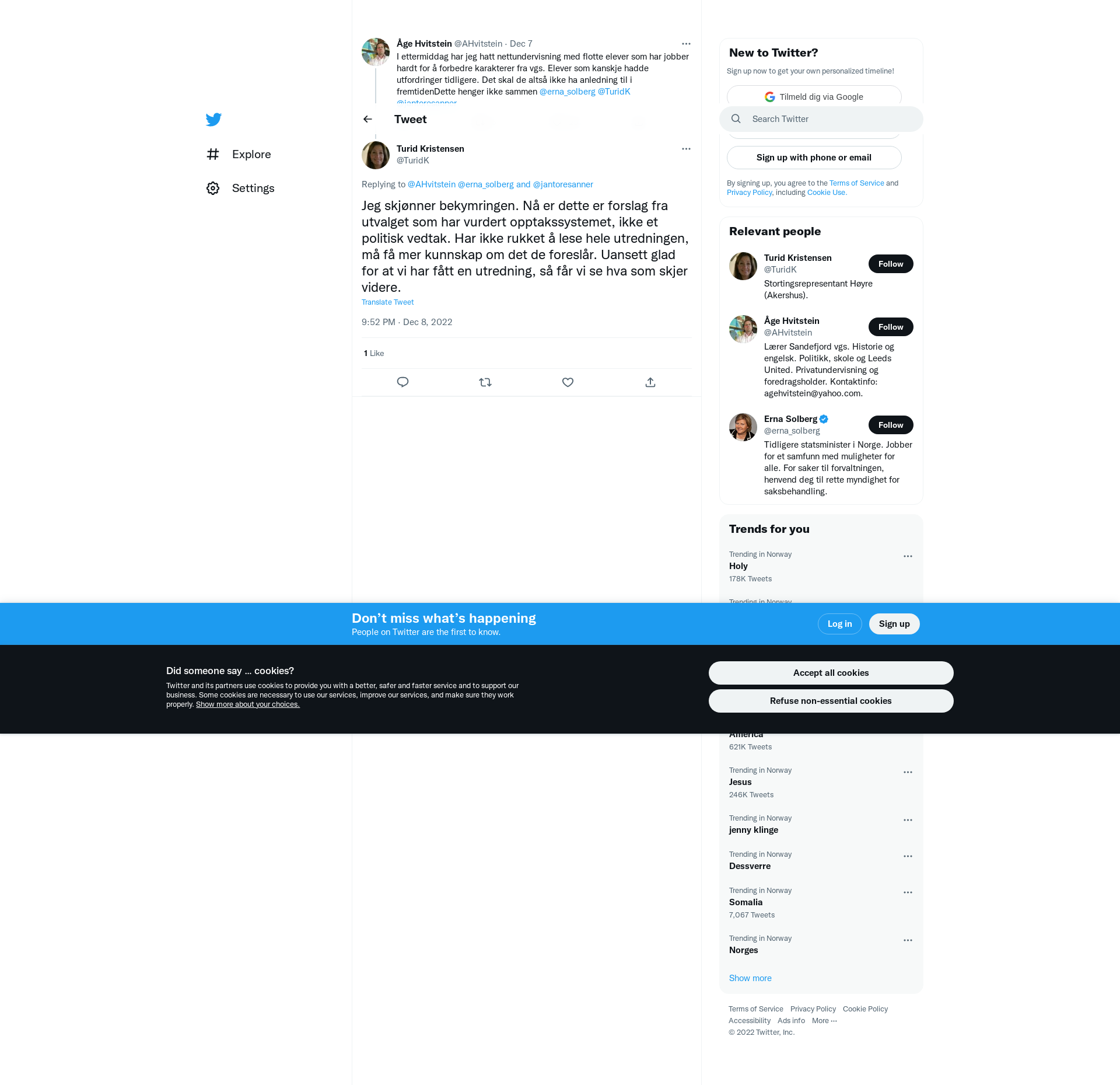 @AHvitstein @erna_solberg @jantoresanner Jeg skjønner bekymringen. Nå er dette er forslag fra utvalget som har vurdert opptakssystemet, ikke et politisk vedtak. Har ikke rukket å lese hele utredningen, må få mer kunnskap om det de foreslår. Uansett glad for at vi har fått en utredning, så får vi se hva som skjer videre.