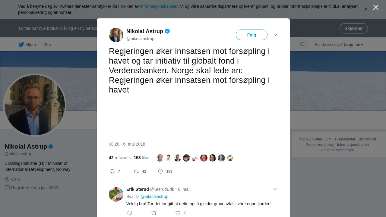 RT @nikolaiastrup: Regjeringen øker innsatsen mot forsøpling i havet og tar initiativ til globalt fond i Verdensbanken. Norge skal led… https://t.co/RrhE89Jq5b