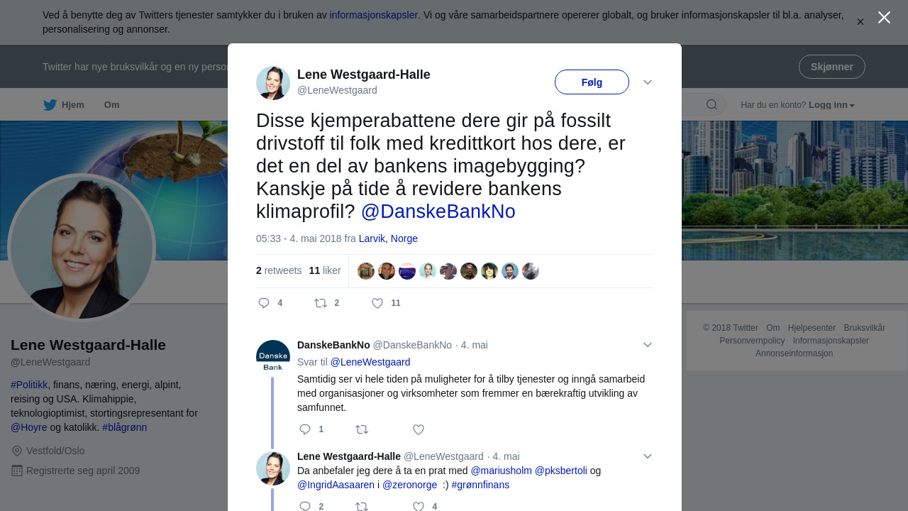 Disse kjemperabattene dere gir på fossilt drivstoff til folk med kredittkort hos dere, er det en del av bankens imagebygging? Kanskje på tide å revidere bankens klimaprofil? @DanskeBankNo