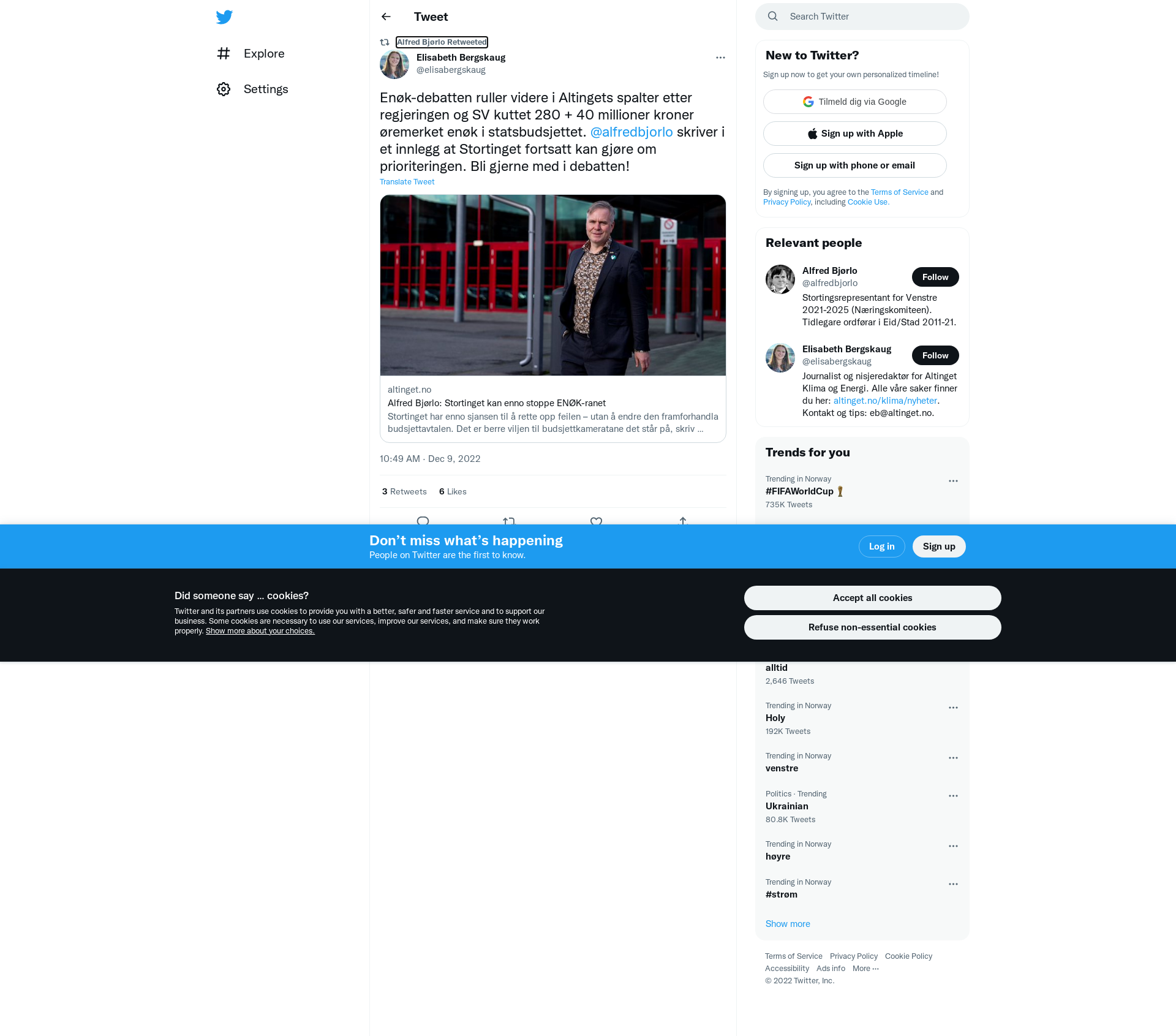 RT @elisabergskaug: Enøk-debatten ruller videre i Altingets spalter etter regjeringen og SV kuttet 280 + 40 millioner kroner øremerket enøk i statsbudsjettet. @alfredbjorlo skriver i et innlegg at Stortinget fortsatt kan gjøre om prioriteringen. Bli gjerne med i debatten! https://t.co/qPXv5uIg0d