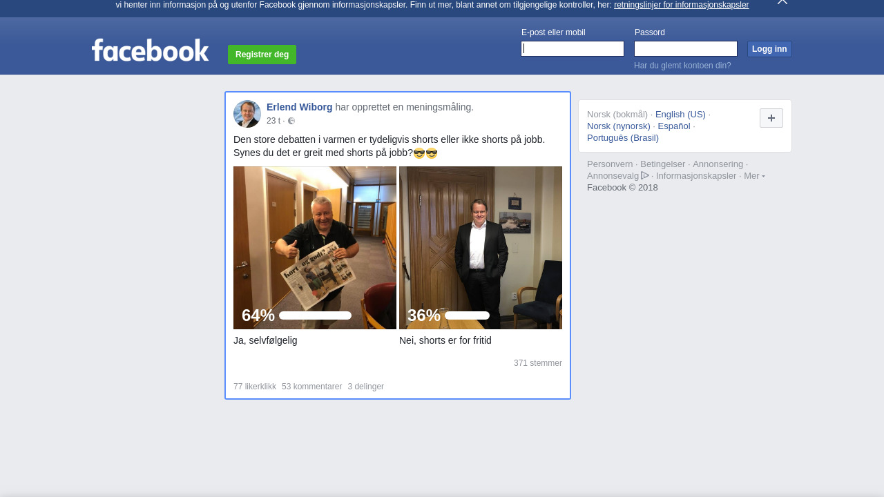 Den store debatten i varmen er tydeligvis shorts eller ikke shorts på jobb. Synes du det er greit med shorts på jobb?😎😎