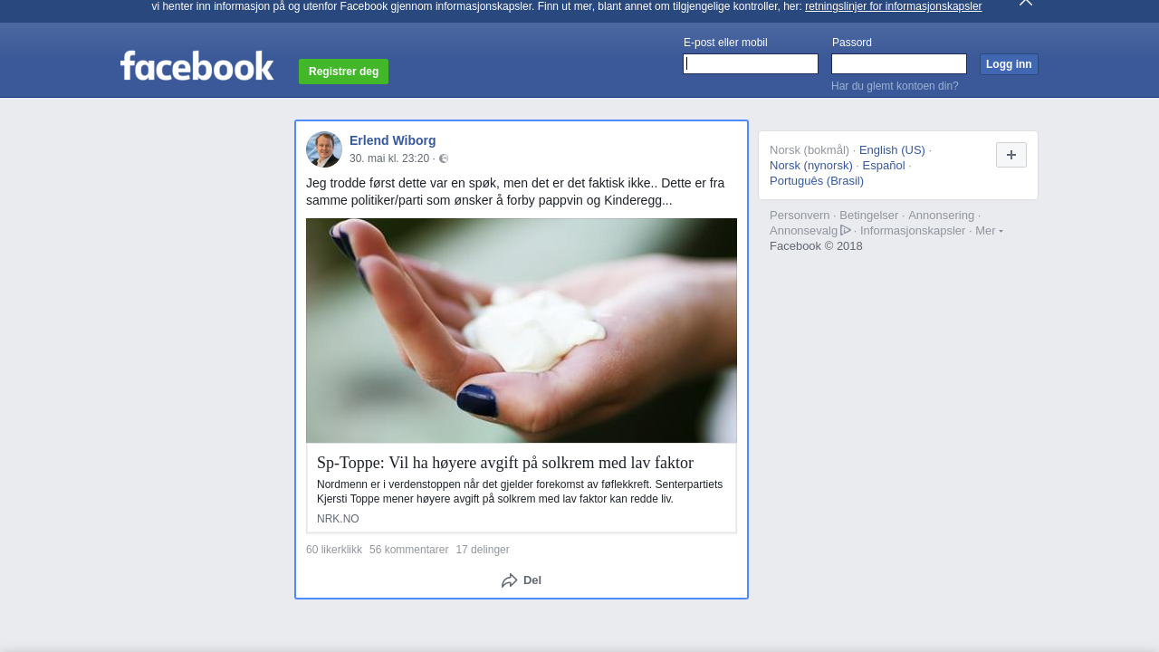 Sp-Toppe: Vil ha høyere avgift på solkrem med lav faktor