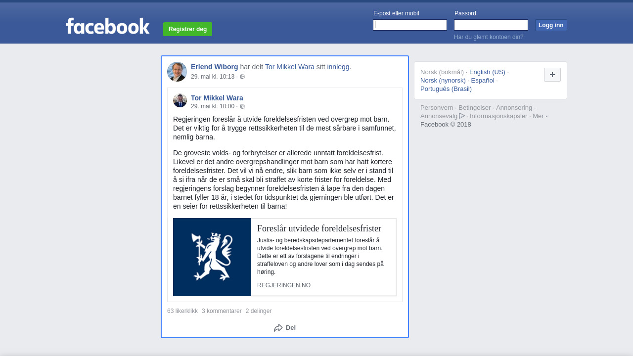 De groveste volds- og forbrytelser er allerede unntatt foreldelsesfrist. Likevel er det andre overgrepshandlinger mot barn som har hatt kortere foreldelsesfrister. Det vil vi nå endre, slik barn som ikke selv er i stand til å si ifra når de er små skal bli straffet av korte frister for foreldelse. Med regjeringens forslag begynner foreldelsesfristen å løpe fra den dagen barnet fyller 18 år, i stedet for tidspunktet da gjerningen ble utført. Det er en seier for rettssikkerheten til barna!