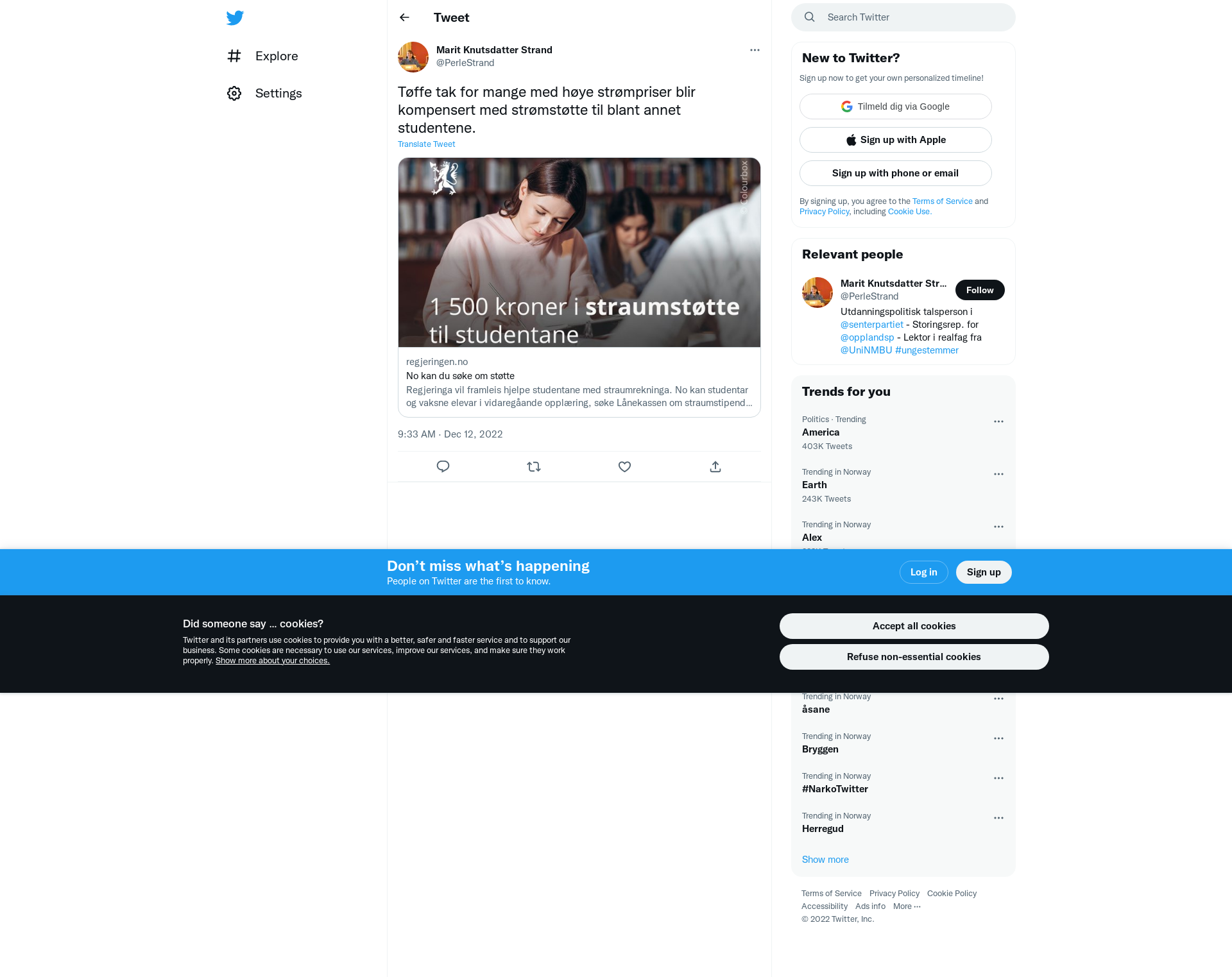Tøffe tak for mange med høye strømpriser blir kompensert med strømstøtte til blant annet studentene. https://t.co/yyK7ne9Bmx