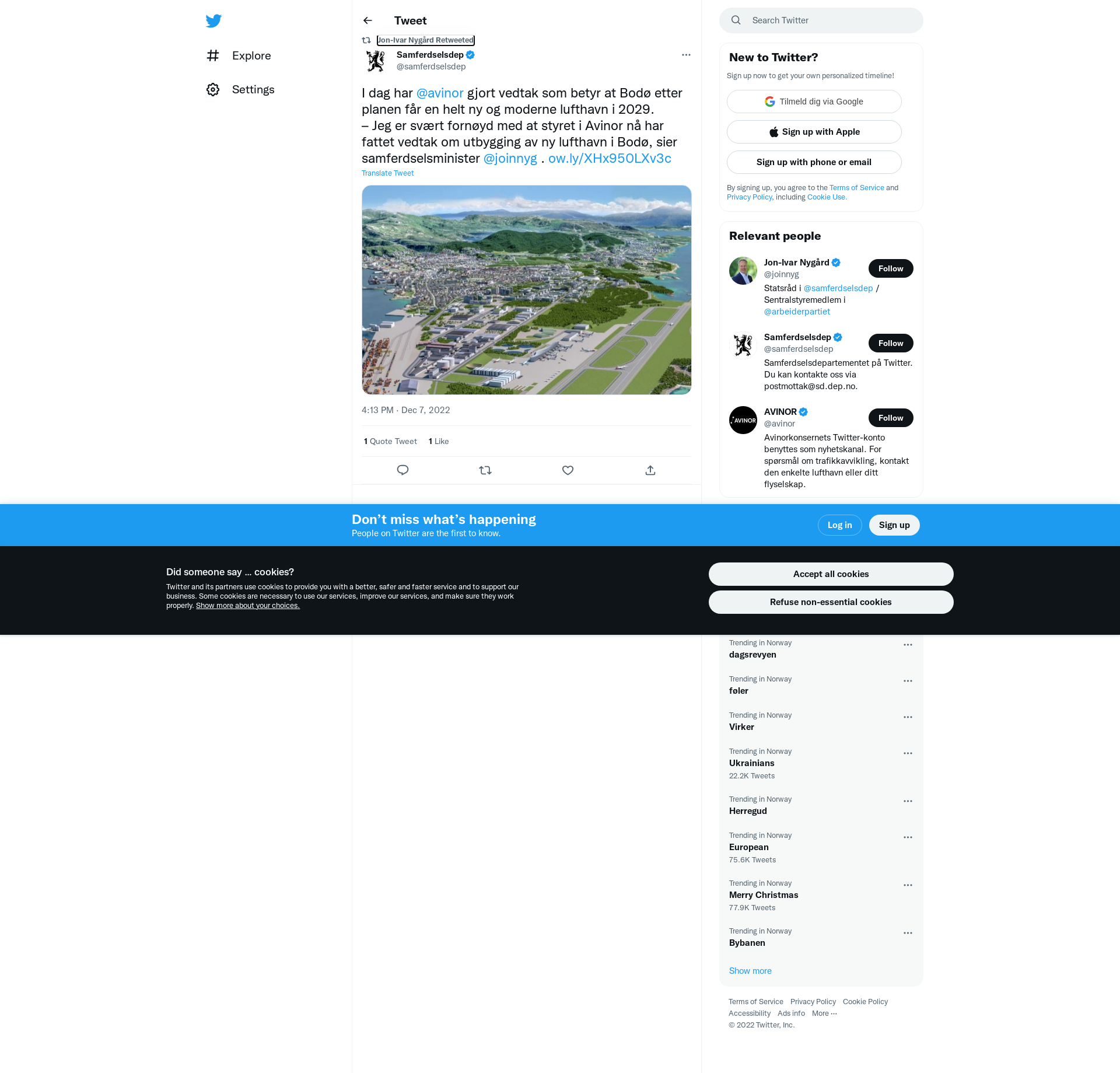 RT @samferdselsdep: I dag har @avinor gjort vedtak som betyr at Bodø etter planen får en helt ny og moderne lufthavn i 2029.\n– Jeg er svært…