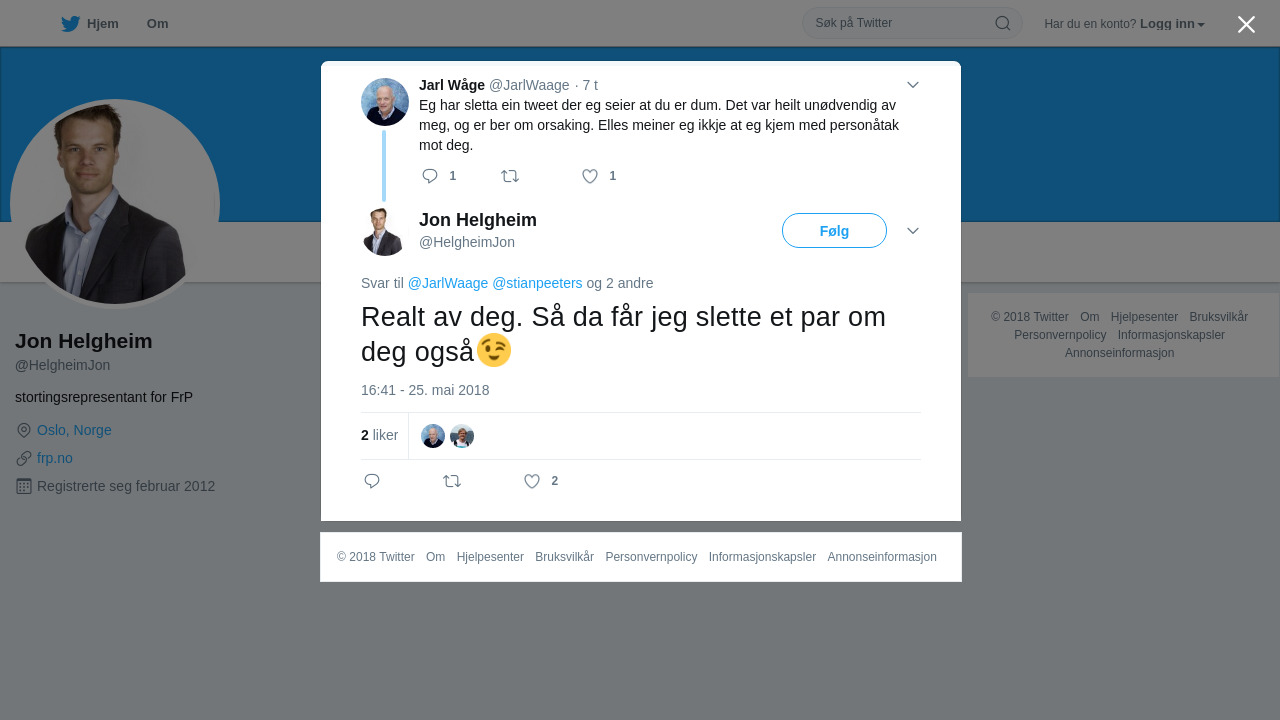 @JarlWaage @stianpeeters @audunlysbakken @frp_no Realt av deg. Så da får jeg slette et par om deg også😉