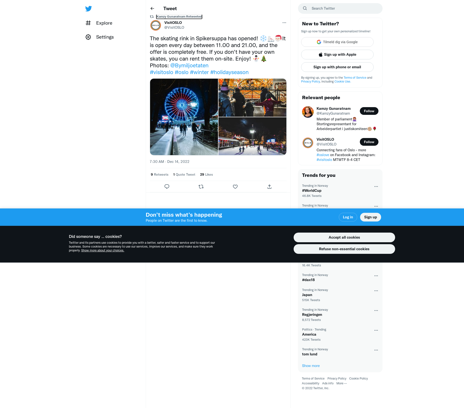 RT @VisitOSLO: The skating rink in Spikersuppa has opened! ❄️⛸️🎅🏻It is open every day between 11.00 and 21.00, and the offer is completely free. If you don't have your own skates, you can rent them on-site. Enjoy! ⛄🎄\nPhotos: @Bymiljoetaten \n#visitoslo #oslo #winter #holidayseason https://t.co/qDwaGjHtPA