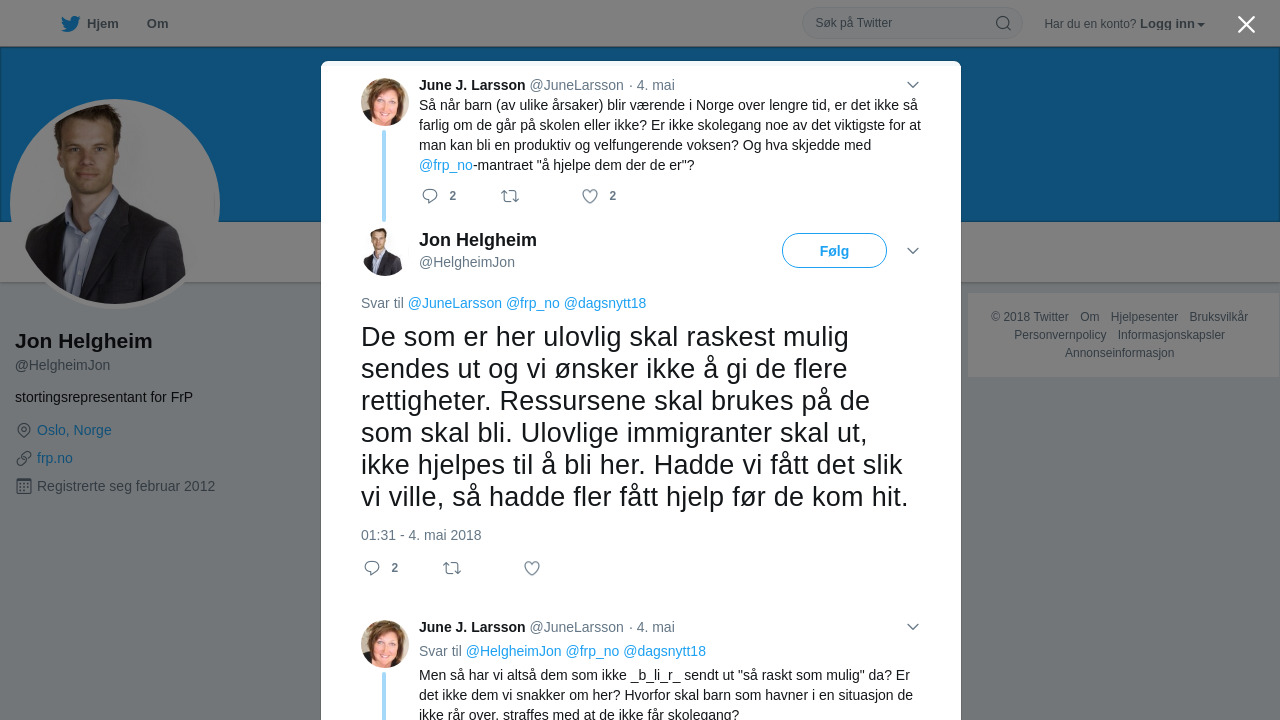 @JuneLarsson @frp_no @dagsnytt18 De som er her ulovlig skal raskest mulig sendes ut og vi ønsker ikke å gi de flere rettigheter. Ressursene skal brukes på de som skal bli. Ulovlige immigranter skal ut, ikke hjelpes til å bli her. Hadde vi fått det slik vi ville, så hadde fler fått hjelp før de kom hit.
