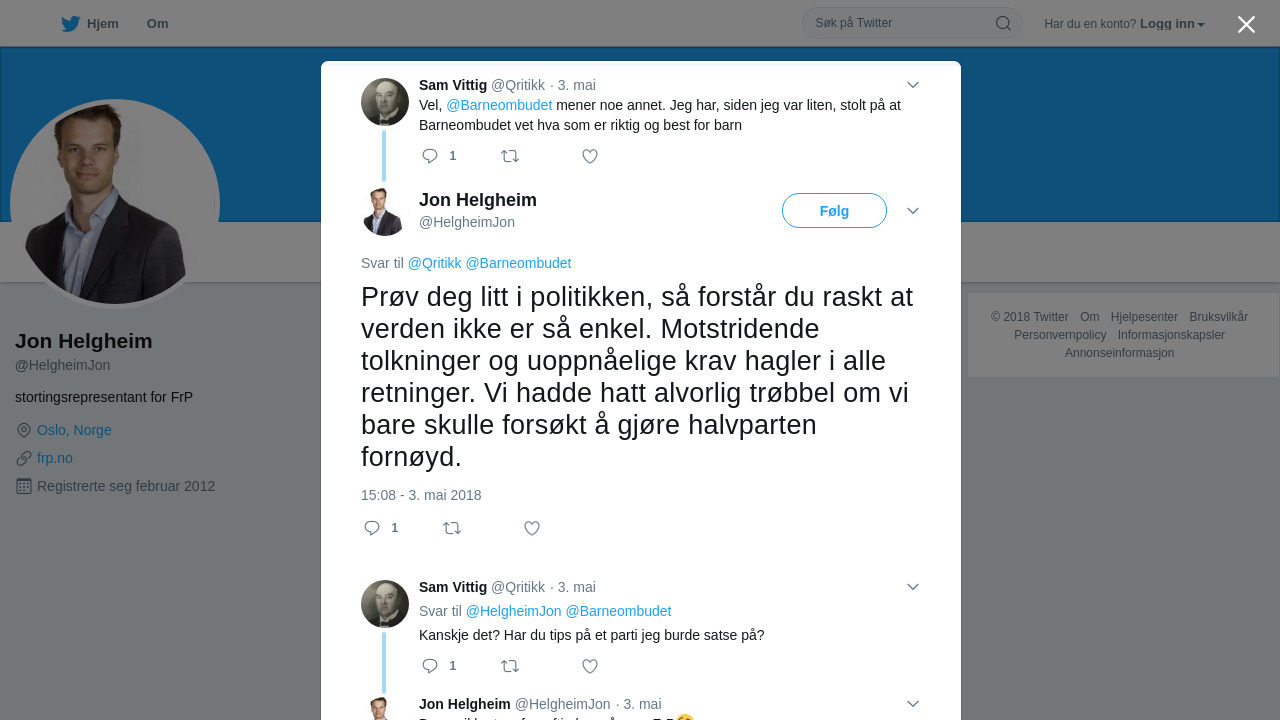 @Qritikk @Barneombudet Prøv deg litt i politikken, så forstår du raskt at verden ikke er så enkel. Motstridende tolkninger og uoppnåelige krav hagler i alle retninger. Vi hadde hatt alvorlig trøbbel om vi bare skulle forsøkt å gjøre halvparten fornøyd.