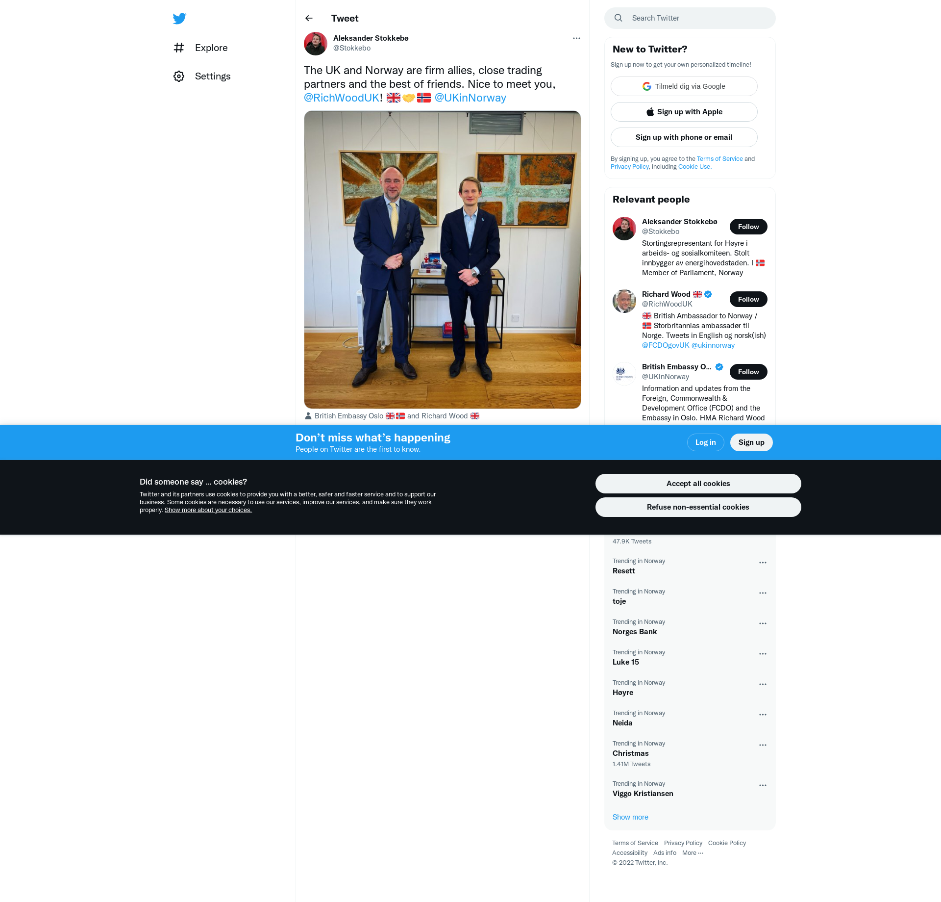 The UK and Norway are firm allies, close trading partners and the best of friends. Nice to meet you, @RichWoodUK! 🇬🇧🤝🇳🇴 @UKinNorway https://t.co/NzGPS8IrkQ