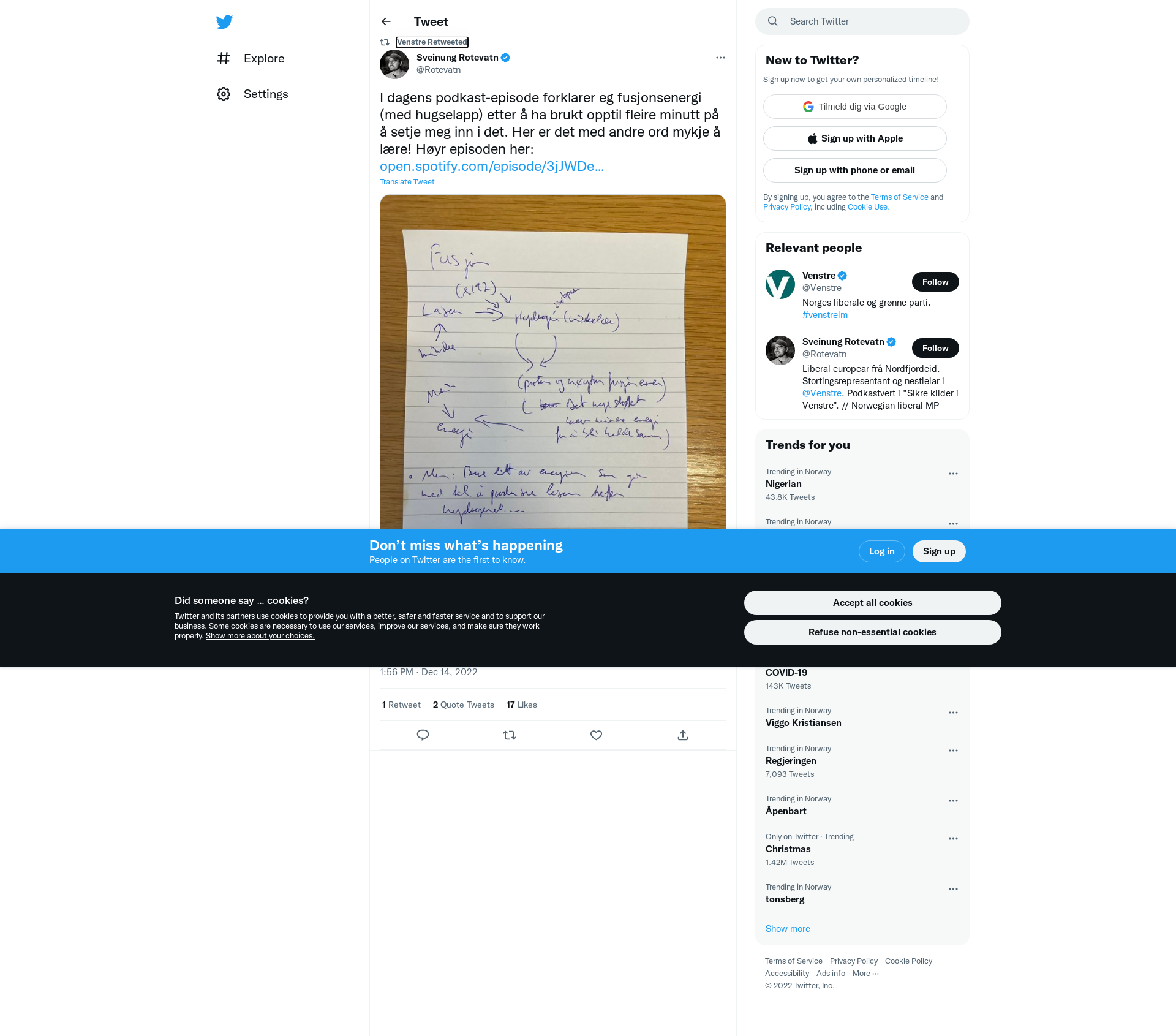 RT @Rotevatn: I dagens podkast-episode forklarer eg fusjonsenergi (med hugselapp) etter å ha brukt opptil fleire minutt på å setje meg inn i det. Her er det med andre ord mykje å lære! Høyr episoden her: https://t.co/8zvqiw0Lbs https://t.co/7FYyMBxAtW