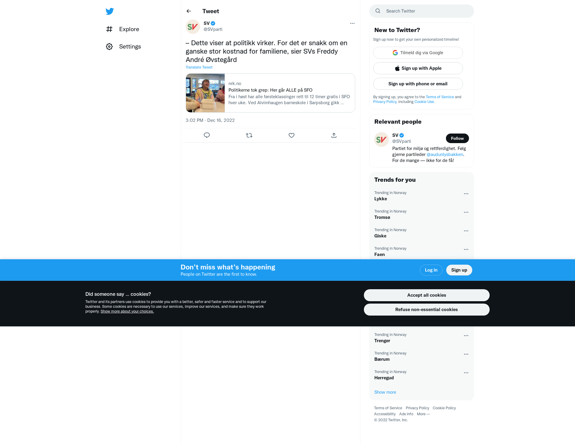 – Dette viser at politikk virker. For det er snakk om en ganske stor kostnad for familiene, sier SVs Freddy André Øvstegård\n\nhttps://t.co/jiAtamW4LR