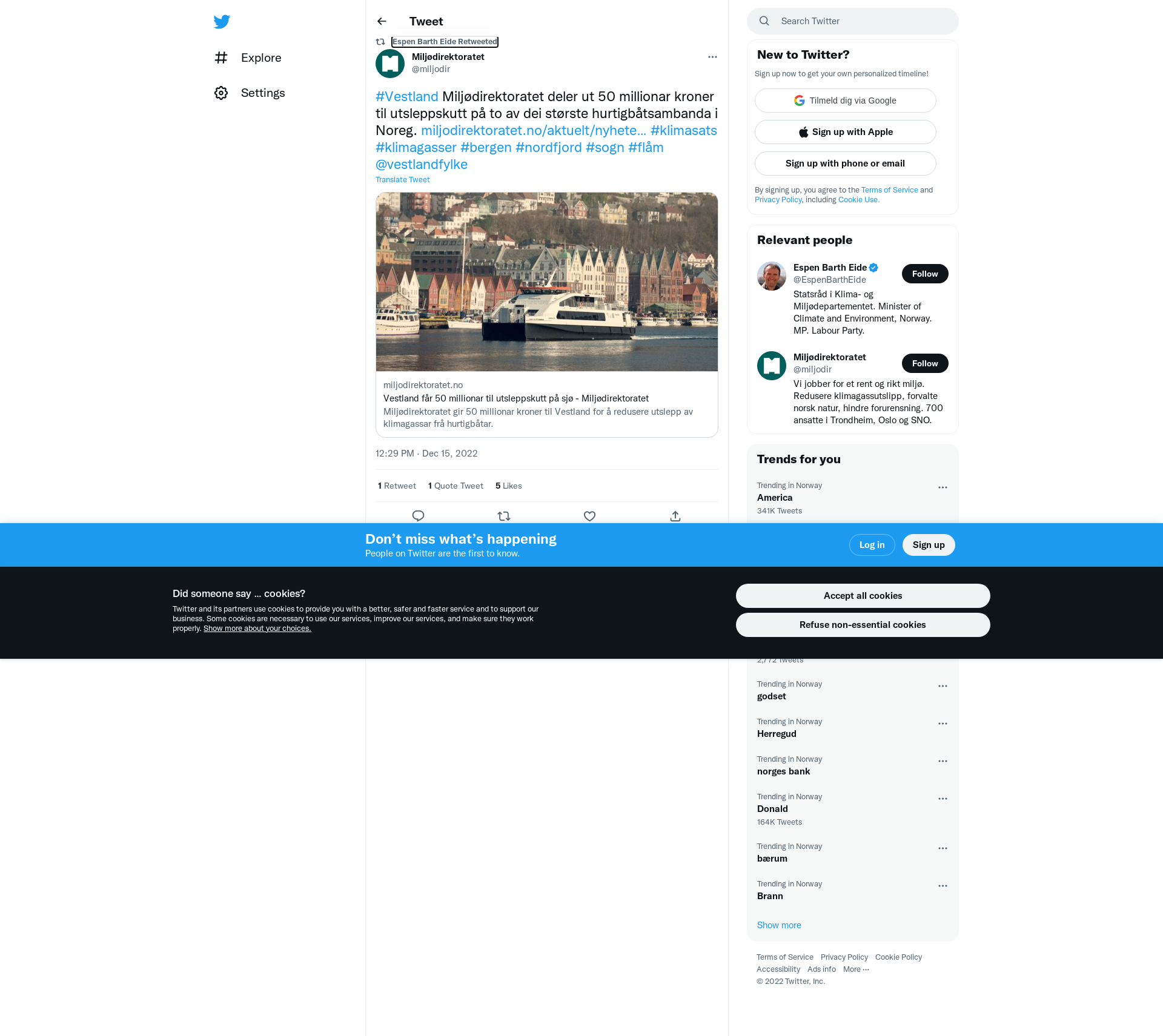 RT @miljodir: #Vestland Miljødirektoratet deler ut 50 millionar kroner til utsleppskutt på to av dei største hurtigbåtsambanda i Noreg. https://t.co/NlUunrzliM #klimasats #klimagasser #bergen #nordfjord #sogn #flåm @vestlandfylke