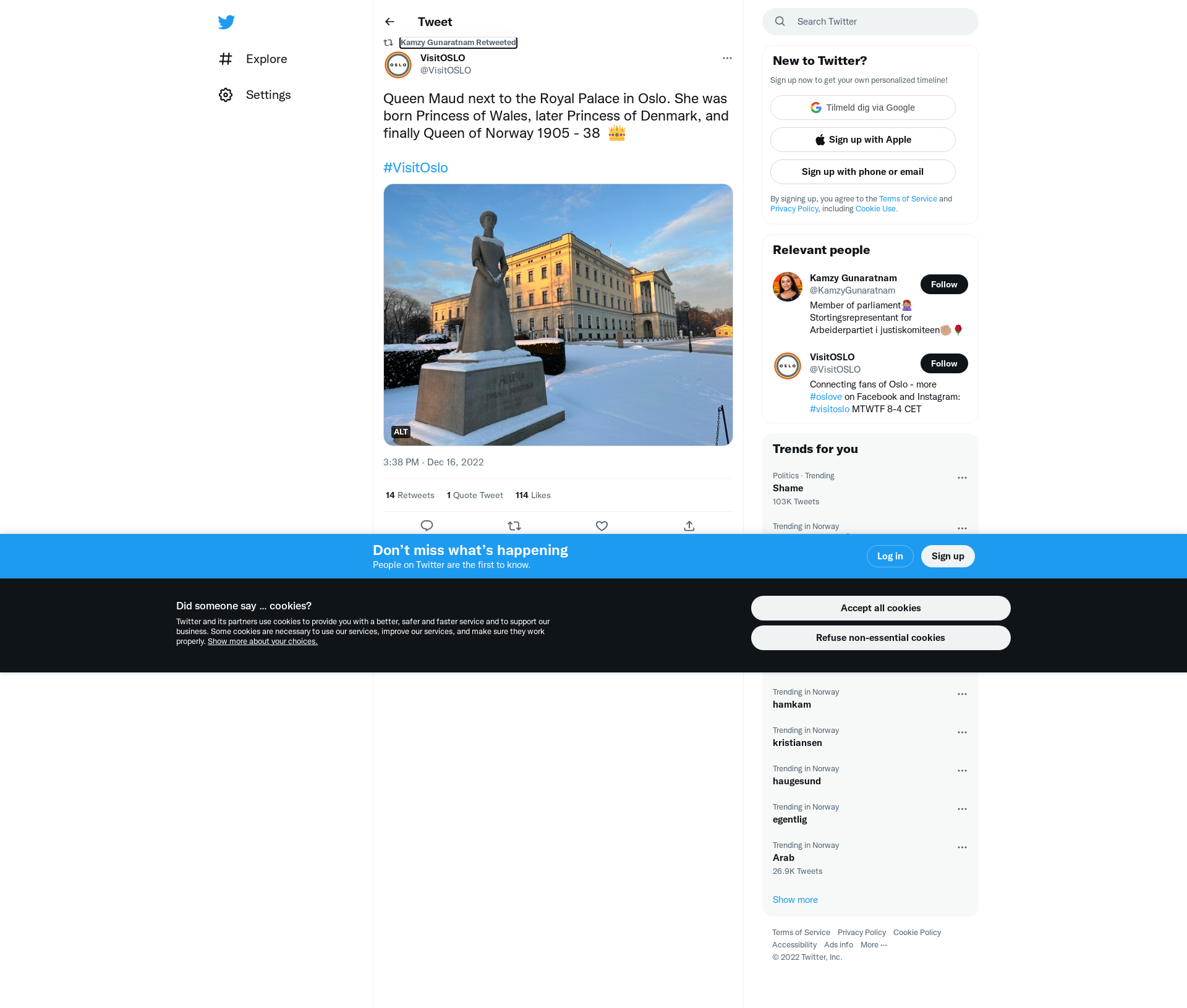 RT @VisitOSLO: Queen Maud next to the Royal Palace in Oslo. She was born Princess of Wales, later Princess of Denmark, and finally Queen of Norway 1905 - 38 👑\n\n#VisitOslo https://t.co/K2lE2ckLy2