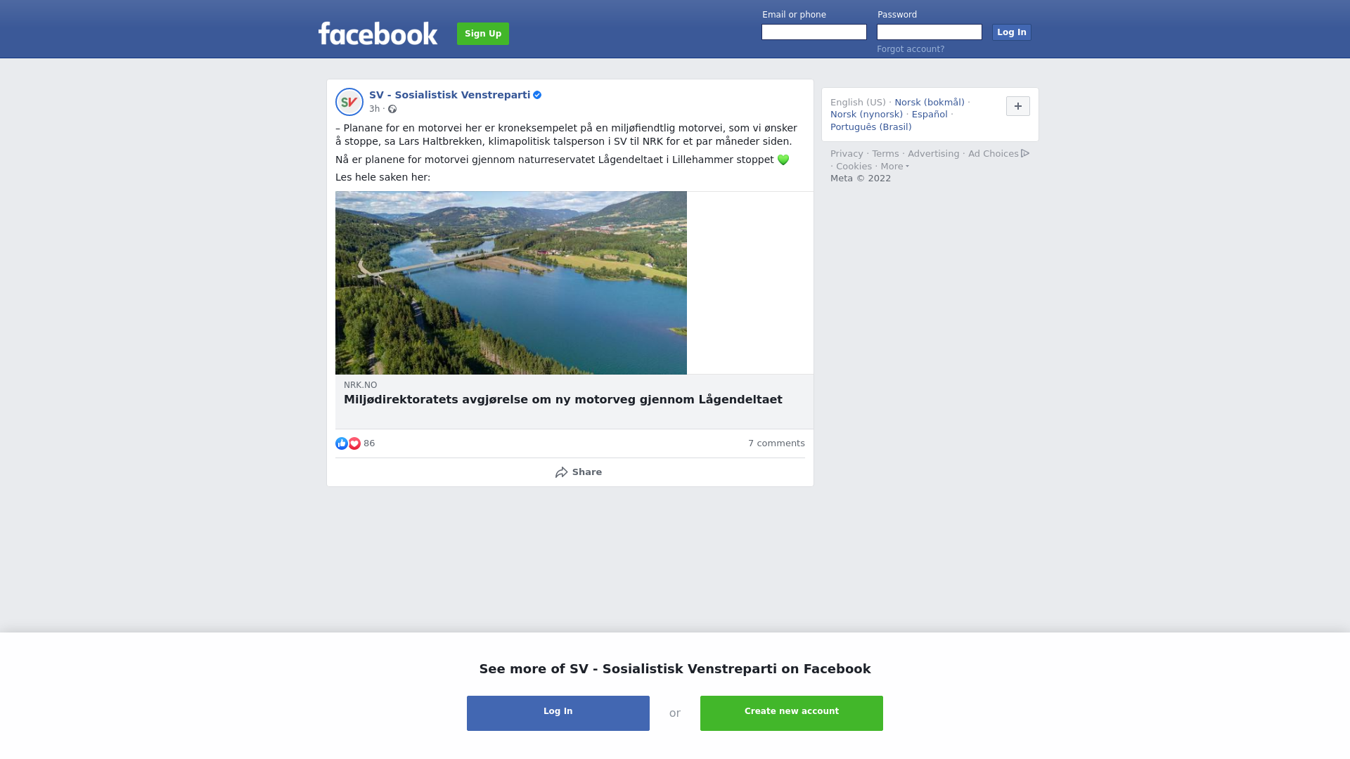 – Planane for en motorvei her er kroneksempelet på en miljøfiendtlig motorvei, som vi ønsker å stoppe, sa Lars Haltbrekken, klimapolitisk talsperson i SV til NRK for et par måneder siden.\n\nNå er planene for motorvei gjennom naturreservatet Lågendeltaet i Lillehammer stoppet 💚\n\nLes hele saken her: