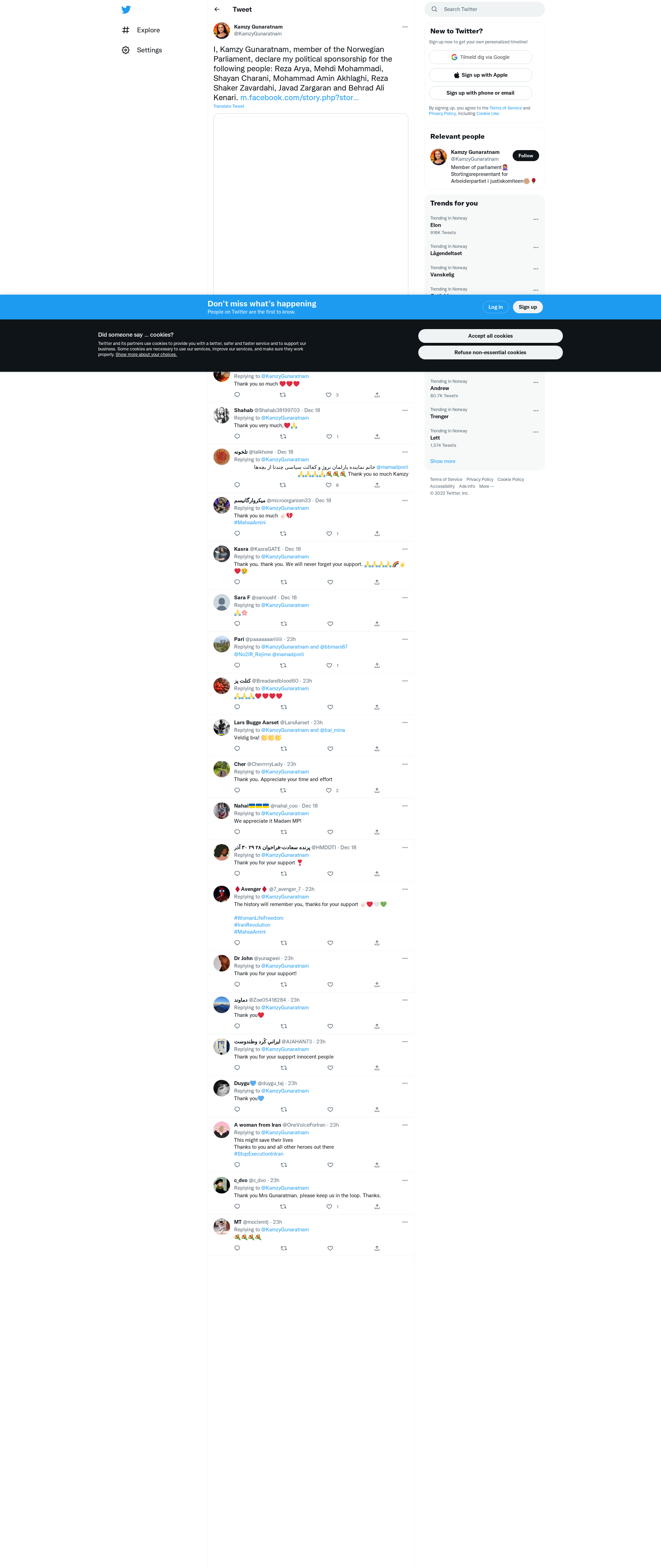 I, Kamzy Gunaratnam, member of the Norwegian Parliament, declare my political sponsorship for the following people: Reza Arya, Mehdi Mohammadi, Shayan Charani, Mohammad Amin Akhlaghi, Reza Shaker Zavardahi, Javad Zargaran and Behrad Ali Kenari. https://t.co/2U72xBALj4 https://t.co/6e9BKaazAZ