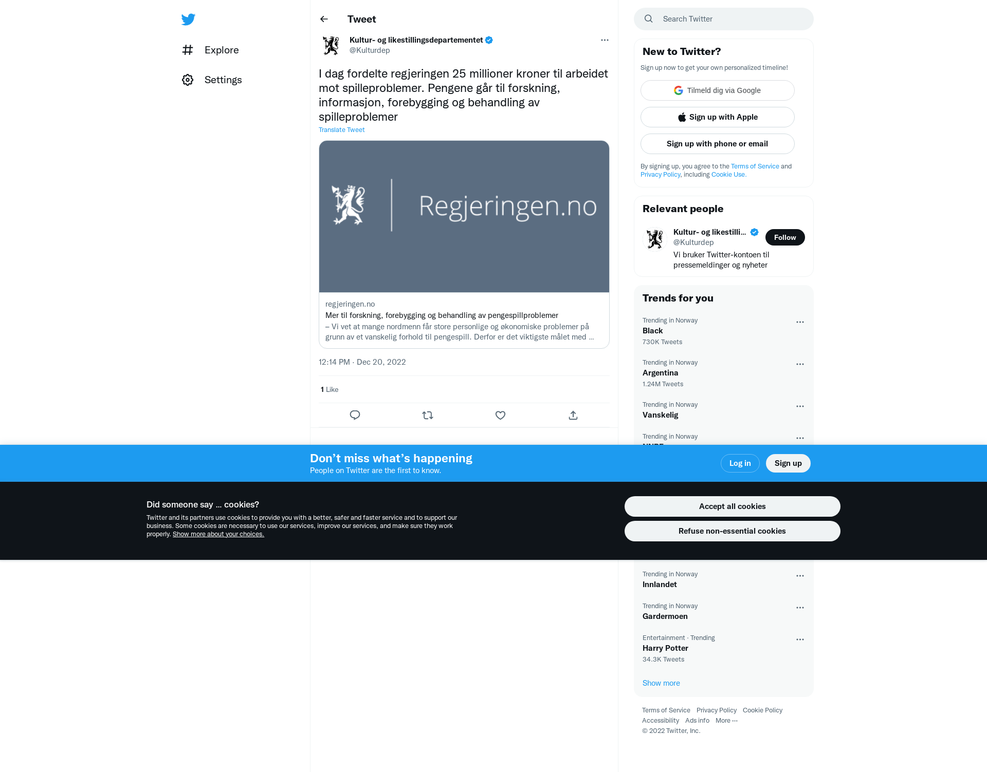 – Vi vet at mange nordmenn får store personlige og økonomiske problemer på grunn av et vanskelig forhold til pengespill. Derfor er det viktigste målet med pengespillpolitikken å forebygge negative konsekvenser. Vi jobber hele tiden med tiltak som skal ...