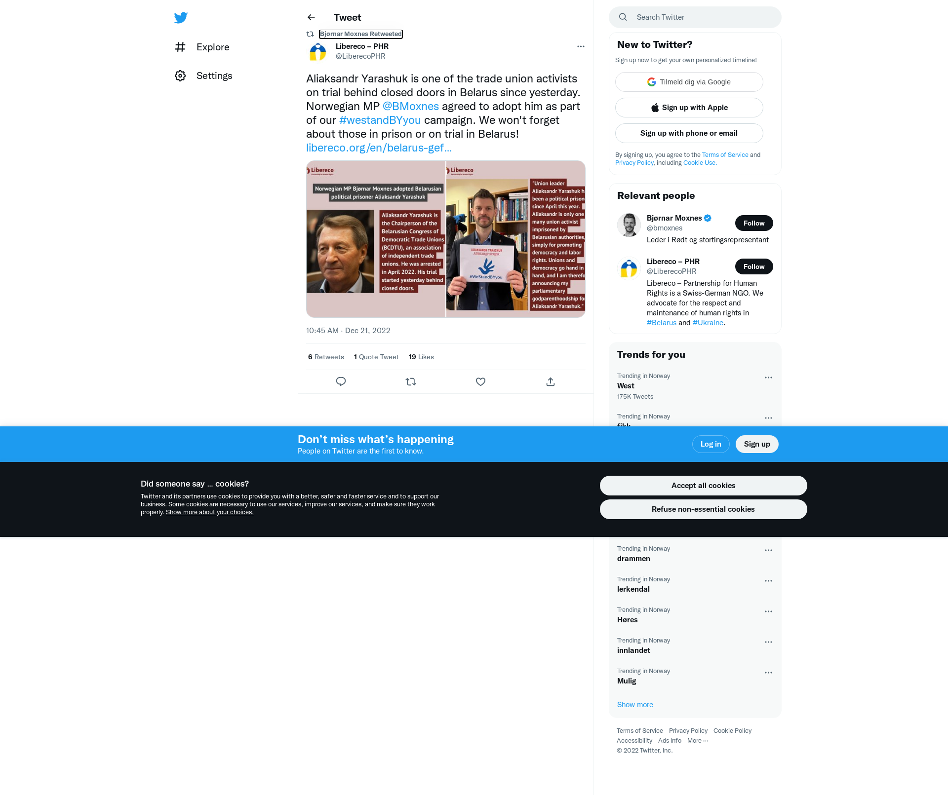 RT @LiberecoPHR: Aliaksandr Yarashuk is one of the trade union activists on trial behind closed doors in Belarus since yesterday. Norwegian MP @BMoxnes agreed to adopt him as part of our #westandBYyou campaign. We won't forget about those in prison or on trial in Belarus! \nhttps://t.co/FcYSrcF2SJ https://t.co/xt4JuVEkZy