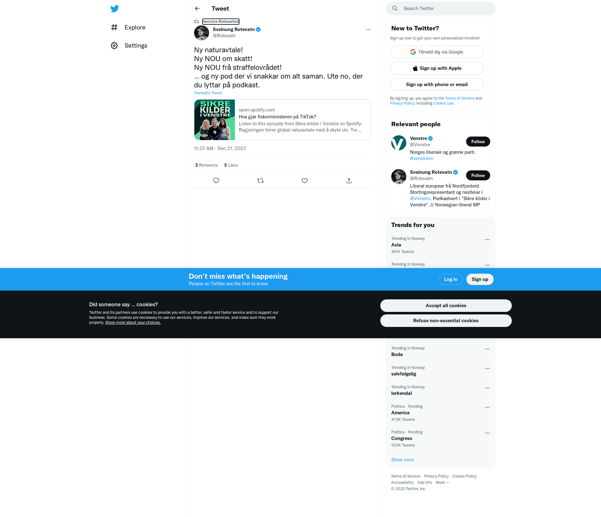 RT @Rotevatn: Ny naturavtale!\nNy NOU om skatt!\nNy NOU frå straffelovrådet!\n… og ny pod der vi snakkar om alt saman. Ute no, der du lyttar p…
