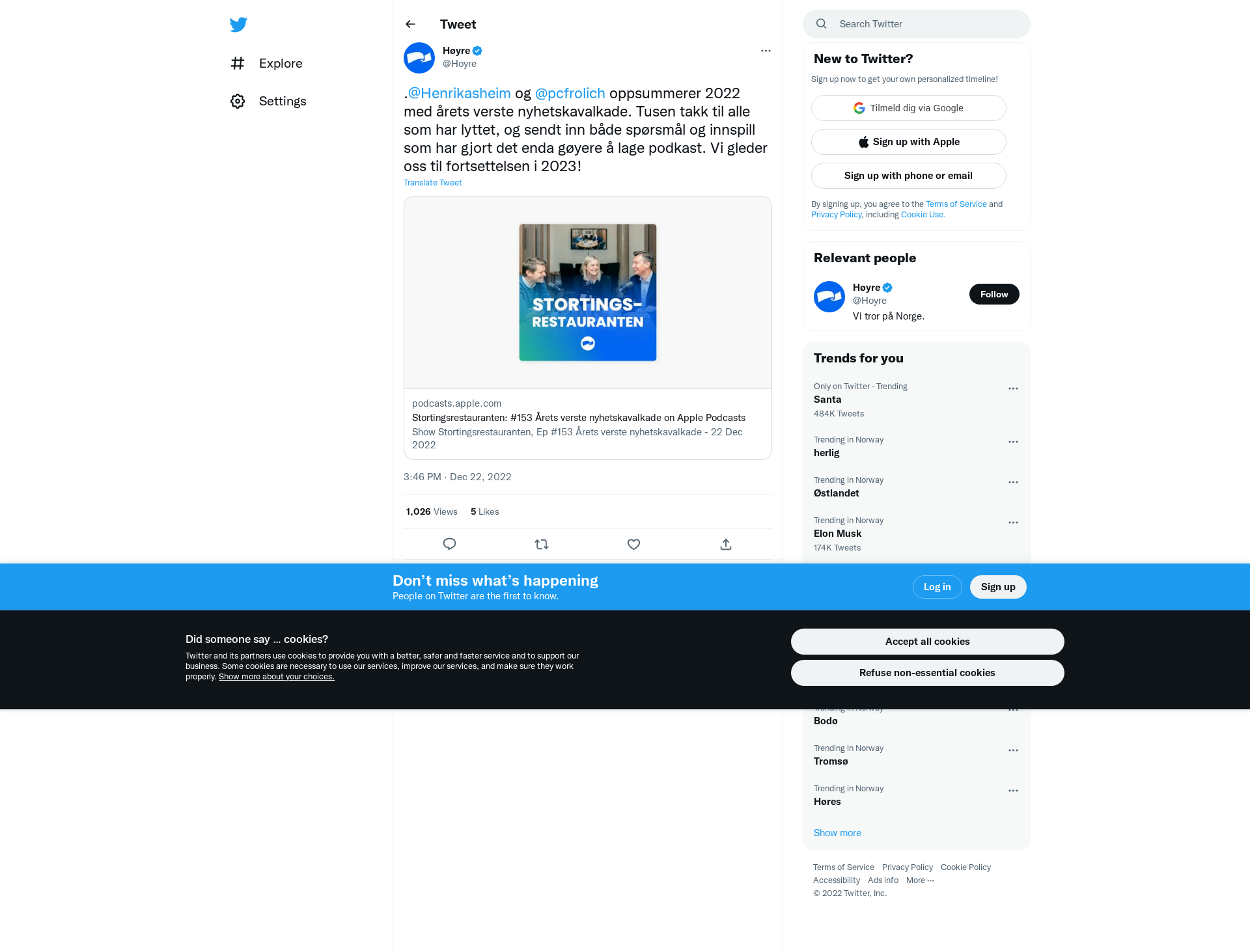 .@Henrikasheim og @pcfrolich oppsummerer 2022 med årets verste nyhetskavalkade. Tusen takk til alle som har lyttet, og sendt inn både spørsmål og innspill som har gjort det enda gøyere å lage podkast. Vi gleder oss til fortsettelsen i 2023! https://t.co/E0p66w4dl1
