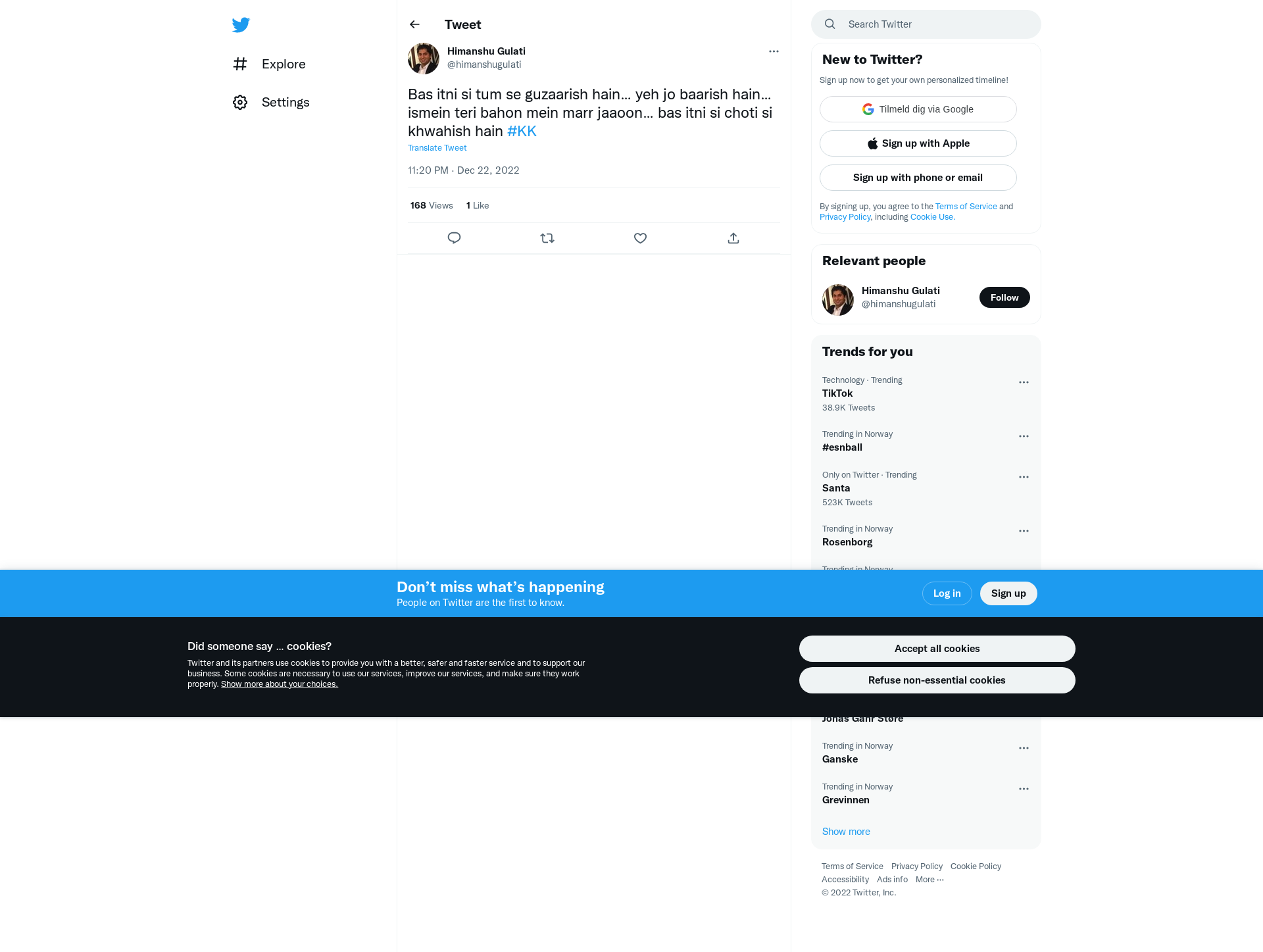 Bas itni si tum se guzaarish hain… yeh jo baarish hain… ismein teri bahon mein marr jaaoon… bas itni si choti si khwahish hain #KK