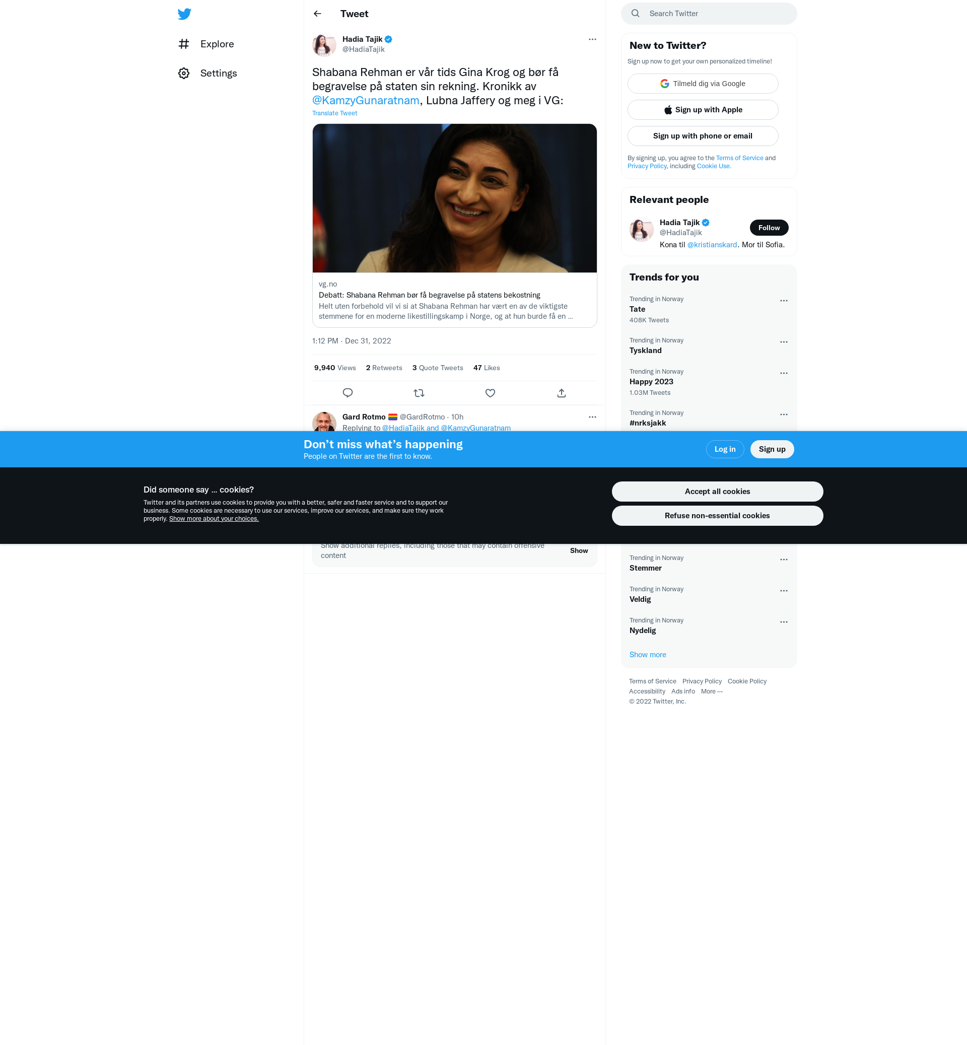 Debatt: Shabana Rehman bør få begravelse på statens bekostning