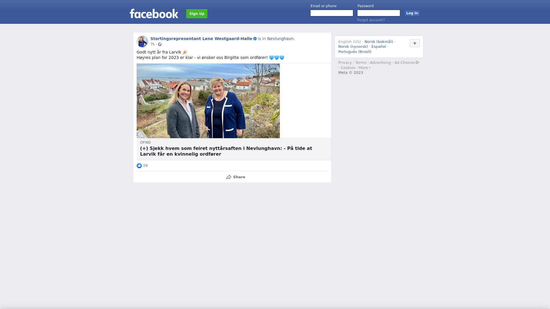 Godt nytt år fra Larvik 🎉\nHøyres plan for 2023 er klar - vi ønsker oss Birgitte som ordfører! 💙💙💙