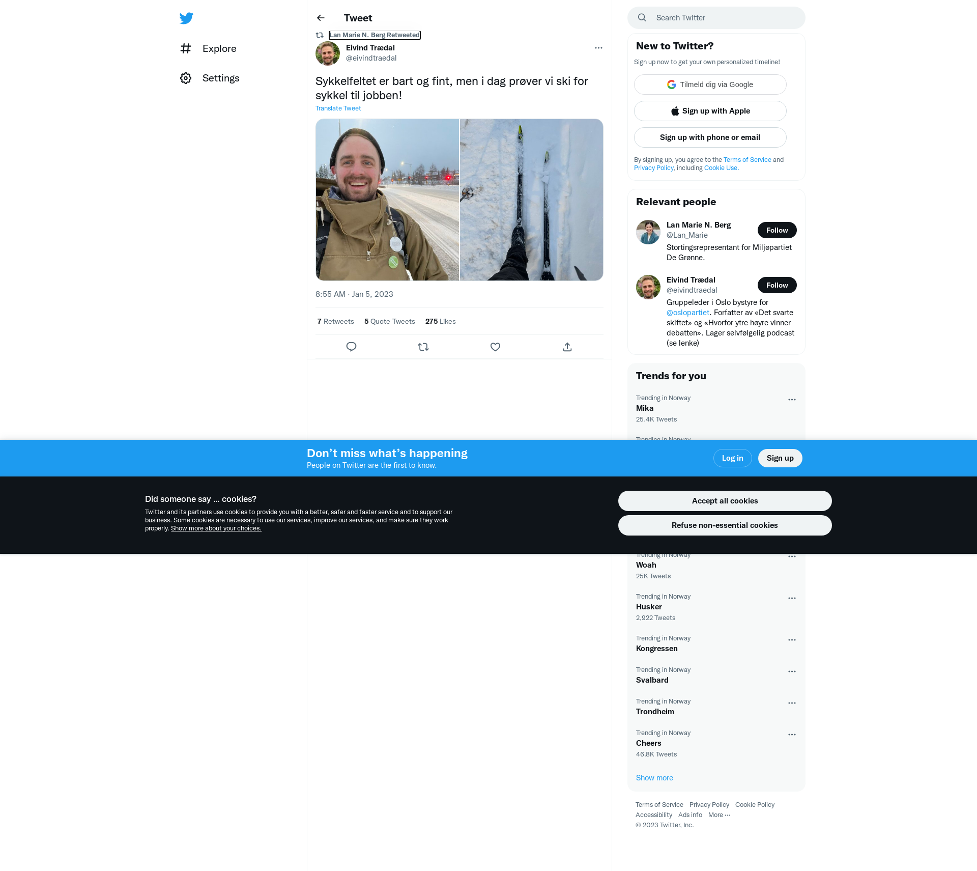 RT @eivindtraedal: Sykkelfeltet er bart og fint, men i dag prøver vi ski for sykkel til jobben! https://t.co/fOsrycIJUh