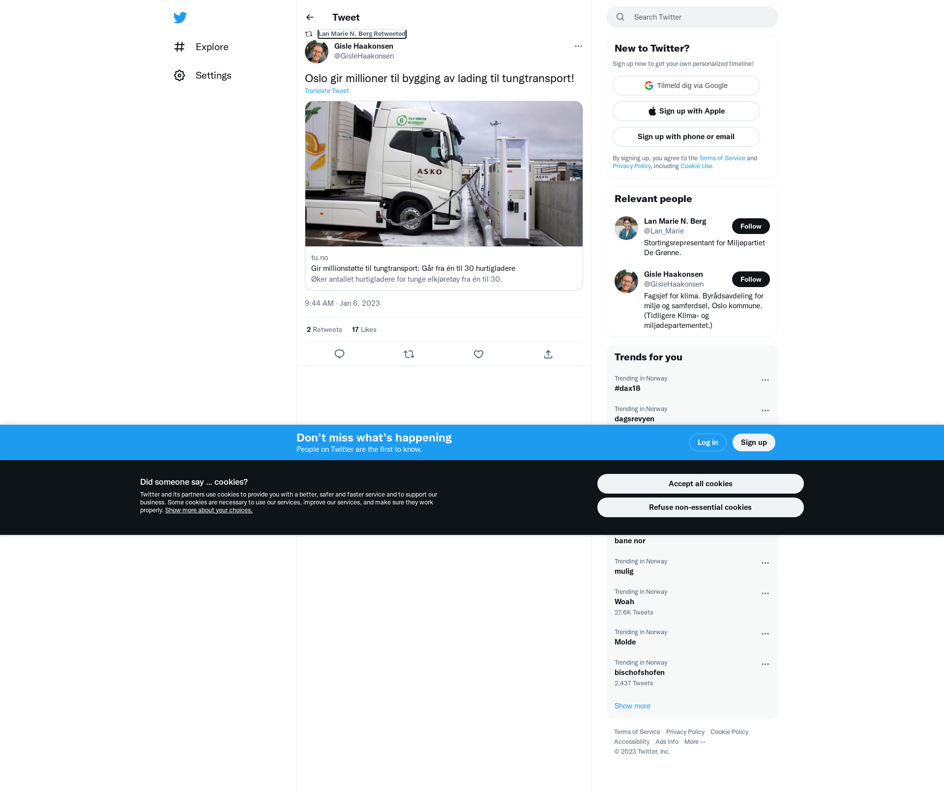 RT @GisleHaakonsen: Oslo gir millioner til bygging av lading til tungtransport!\nhttps://t.co/0Pp1P3lrmP