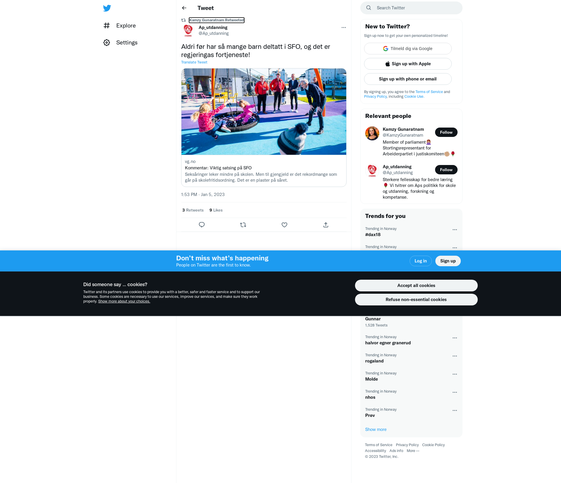 RT @Ap_utdanning: Aldri før har så mange barn deltatt i SFO, og det er regjeringas fortjeneste!\n\nhttps://t.co/ZnmQJVXulJ